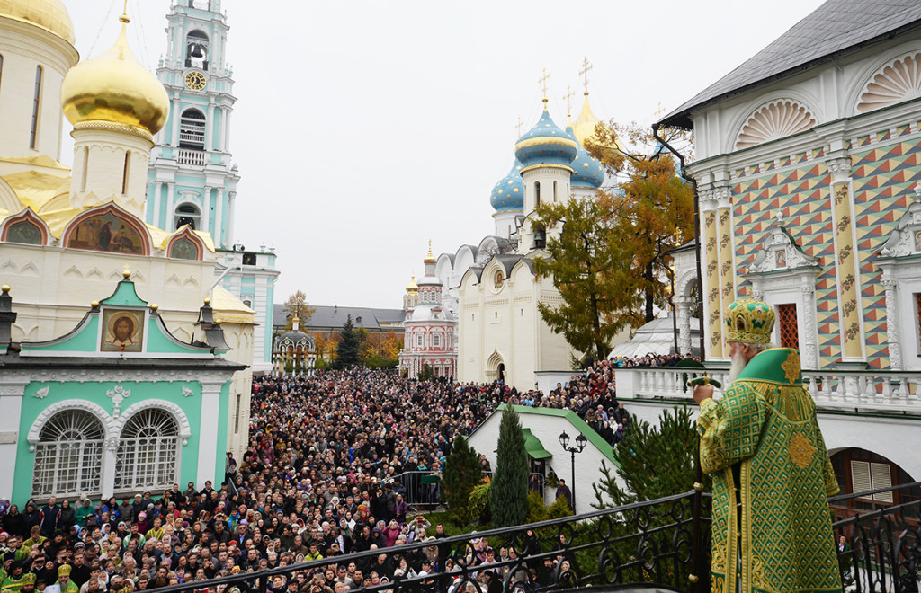 8 октября 2016 года, в день преставления преподобного Сергия, игумена Радонежского, всея России чудотворца (1392), Святейший Патриарх Московский и всея Руси КИРИЛЛ совершил Божественную литургию в Успенском соборе Свято-Троицкой Сергиевой лавры. По окончании Литургии и молебна на Соборной площади Лавры Предстоятель Русской Православной Церкви с балкона Патриарших покоев обратился с Первосвятительским словом к участникам торжеств.