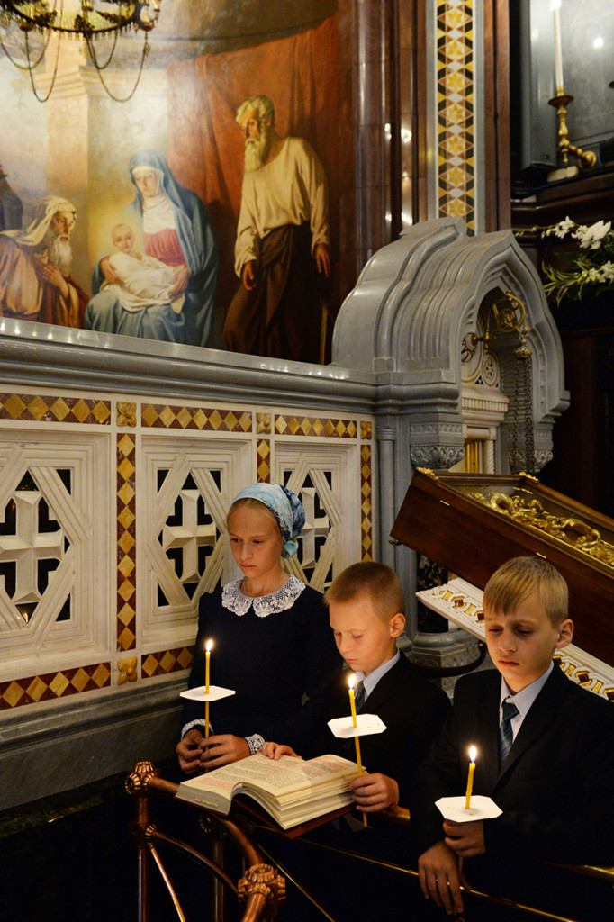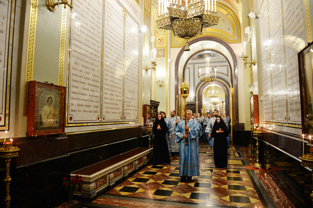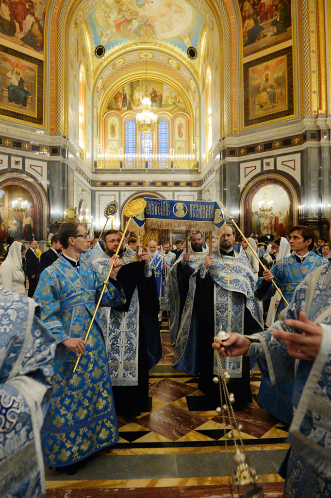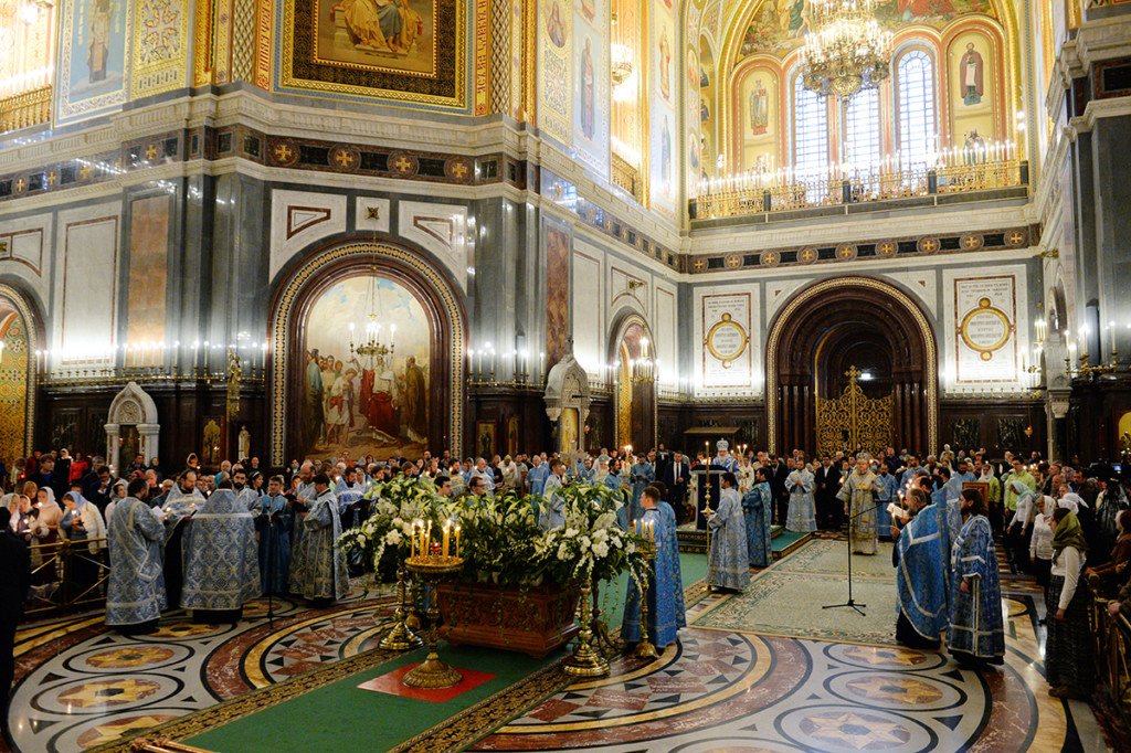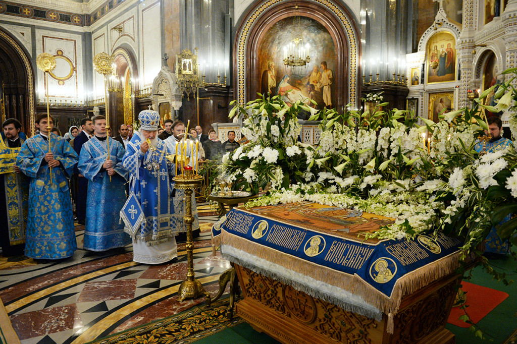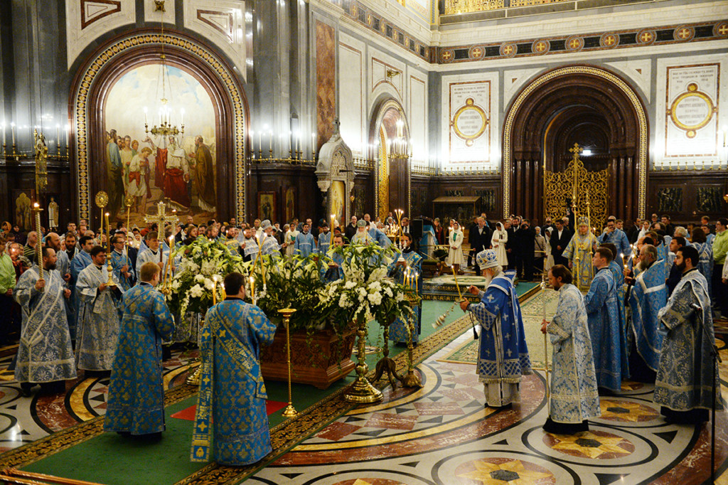Вечером 28 августа 2017 года в кафедральном соборном Храме Христа Спасителя в Москве Святейший Патриарх Московский и всея Руси КИРИЛЛ совершил утреню с чином Погребения Пресвятой Богородицы.