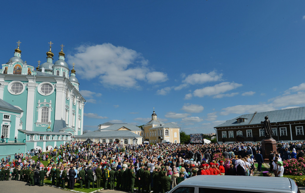 Мы воздаем дань всем смолянам, кто жизнь свою положил за Отечество, за веру православную. Наша великая история обязывает и ныне живущих в Смоленске крепко хранить веру православную, любовь к Отечеству и сознавать удивительную духовную силу, присущую этому месту. Эту силу надо чувствовать, как чувствовали ее наши предки. И особенно эта благодатная сила касается человеческих сердец, когда мы молимся перед чудотворным образом Одигитрии.