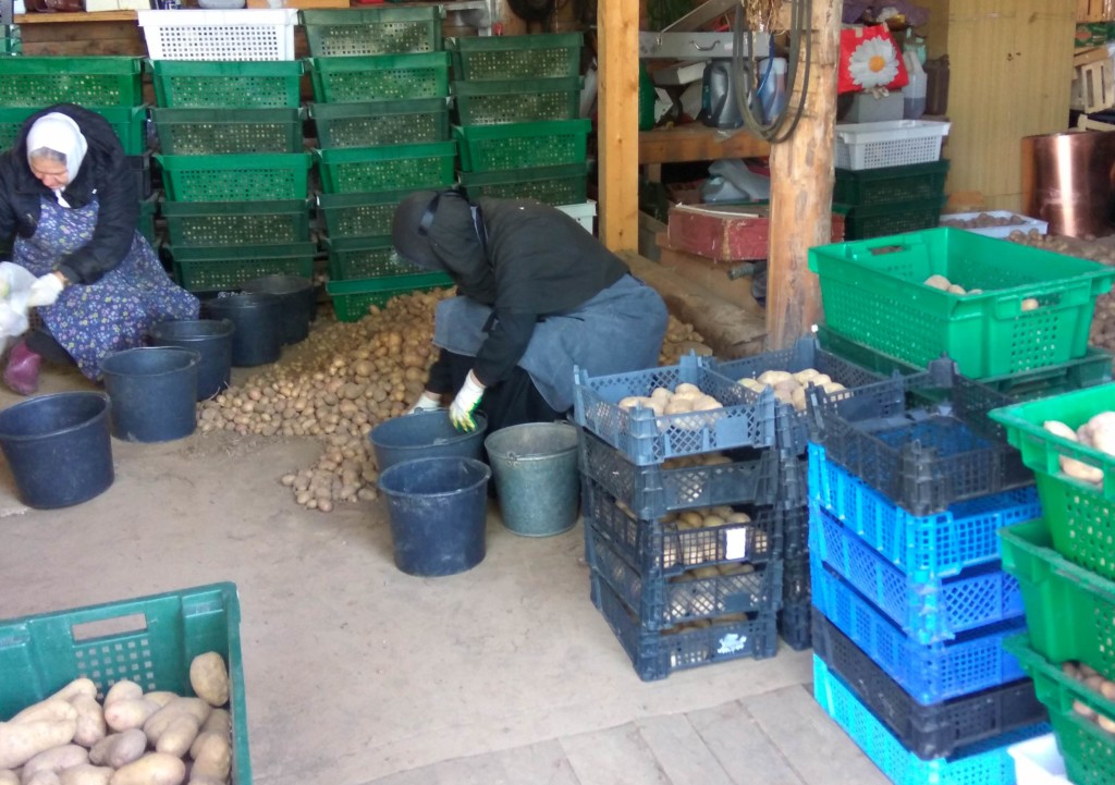 На подворье нашей обители продолжаются сельскохозяйственные работы. Сестры собирают небольшой в этом году урожай, перебирают собранный картофель, делают заготовки на зиму, готовят пчел к предстоящей зимовке. У сестер много трудов и забот на всех послушаниях, но эти труды полезны и радостны.