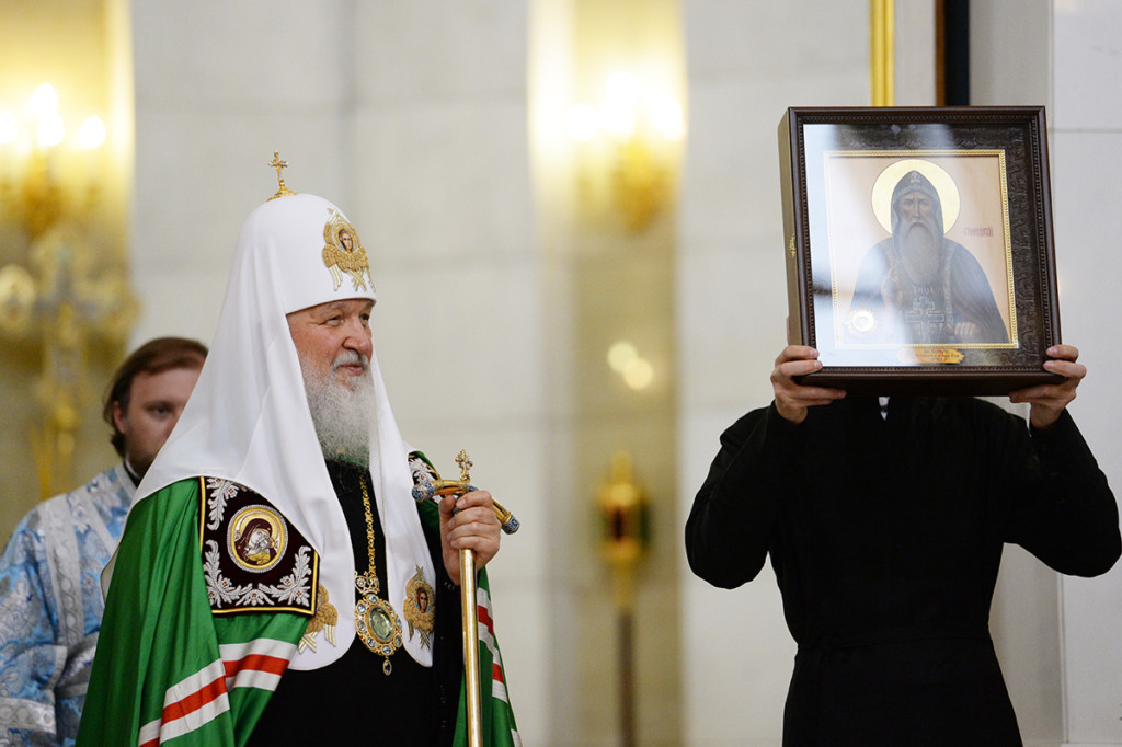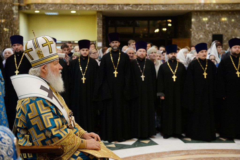 После сугубой ектении Предстоятель Русской Православной Церкви вознес молитву о мире на Украине.