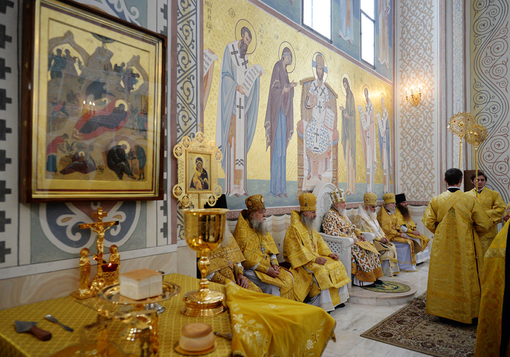 За Литургией молились настоятельница Покровского монастыря игумения Олимпиада (Баранова), настоятельницы ряда женских монастырей,