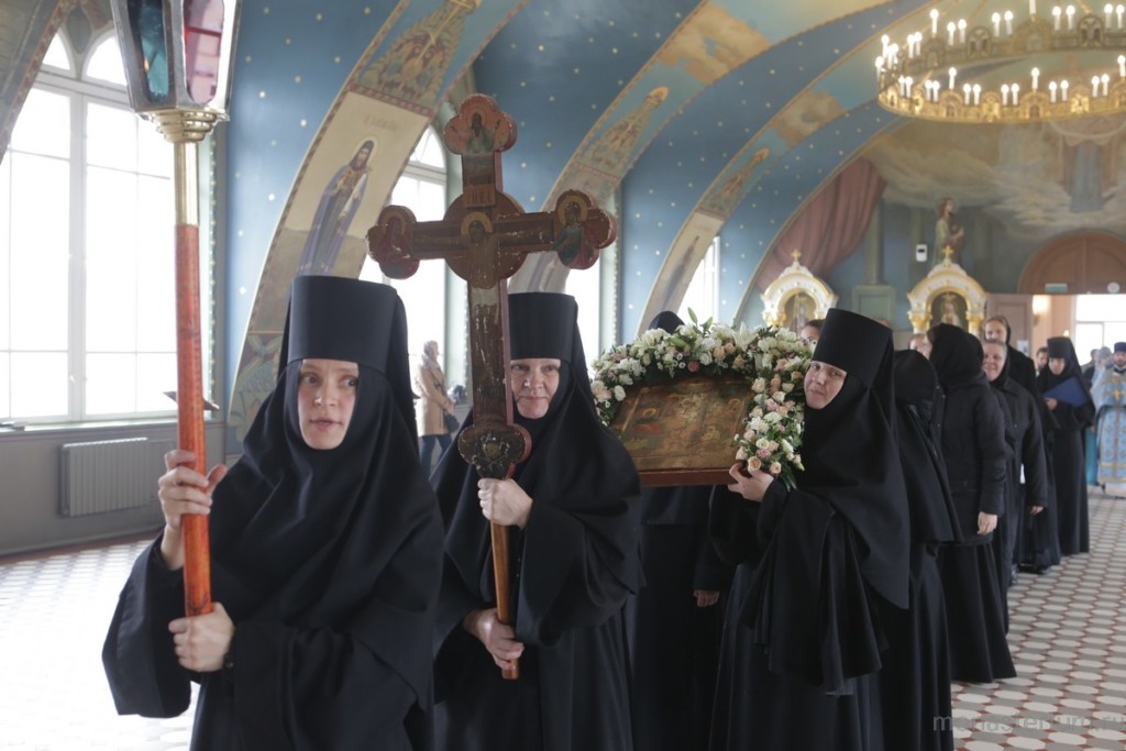 Вечером служится лития, на утрени торжественно совершается полиелей, читается праздничный канон, особым напевом поются ирмосы. Утром, по традиции, совершается водосвятный молебен, служатся ранняя и поздняя Литургии. Если позволяет погода, праздничное богослужение завершается крестным ходом по обители. Наши прихожане очень любят главный праздник монастыря, и те, кто в этот день работают, стараются по возможности прийти на раннюю Литургию.