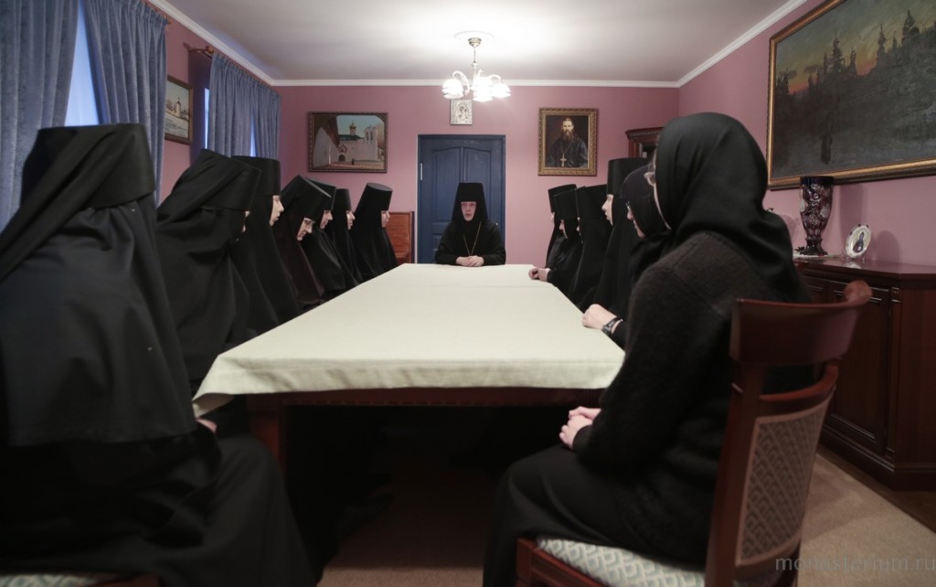 - Игумения Викторина (Перминова) проводит беседу с сестрами.