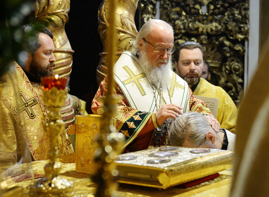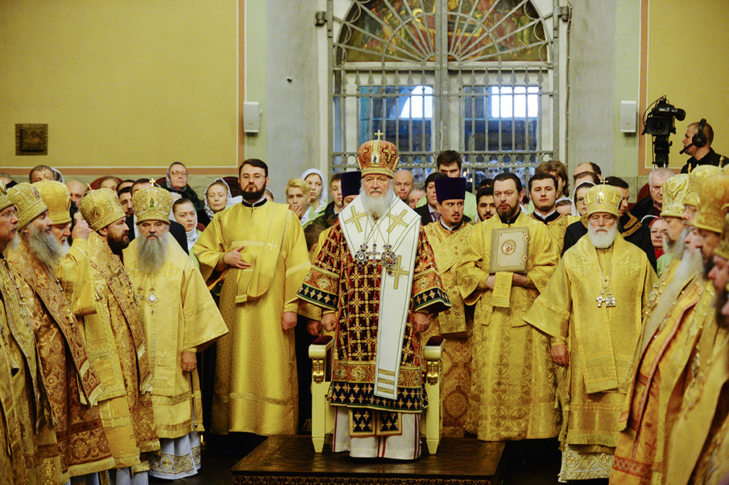 В богослужении участвовали члены Высшего Церковного Совета Русской Православной Церкви. Этот орган был образован по предложению Святейшего Патриарха КИРИЛЛА постановлением Архиерейского Собора в 2011 году, «по аналогии с органом, учрежденным Всероссийским Церковным Собором в 1917 году и прекратившим работу в годы гонений» (Определение Собора «О вопросах внутренней жизни и внешней деятельности Русской Православной Церкви», п. 6).