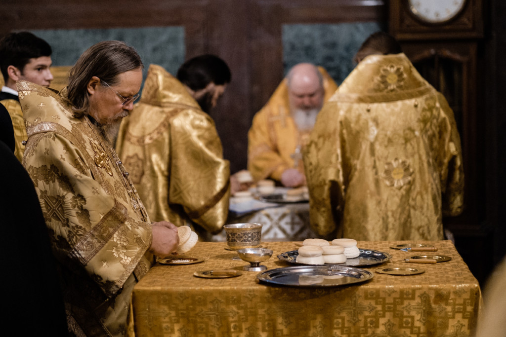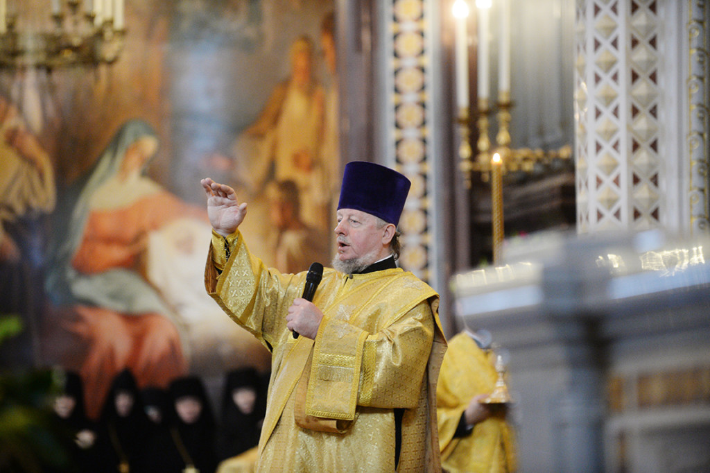Проповедь перед причастием произнес протоиерей Максим Кравченко, настоятель храма Введения Пресвятой Богородицы в Вешняках г. Москвы.