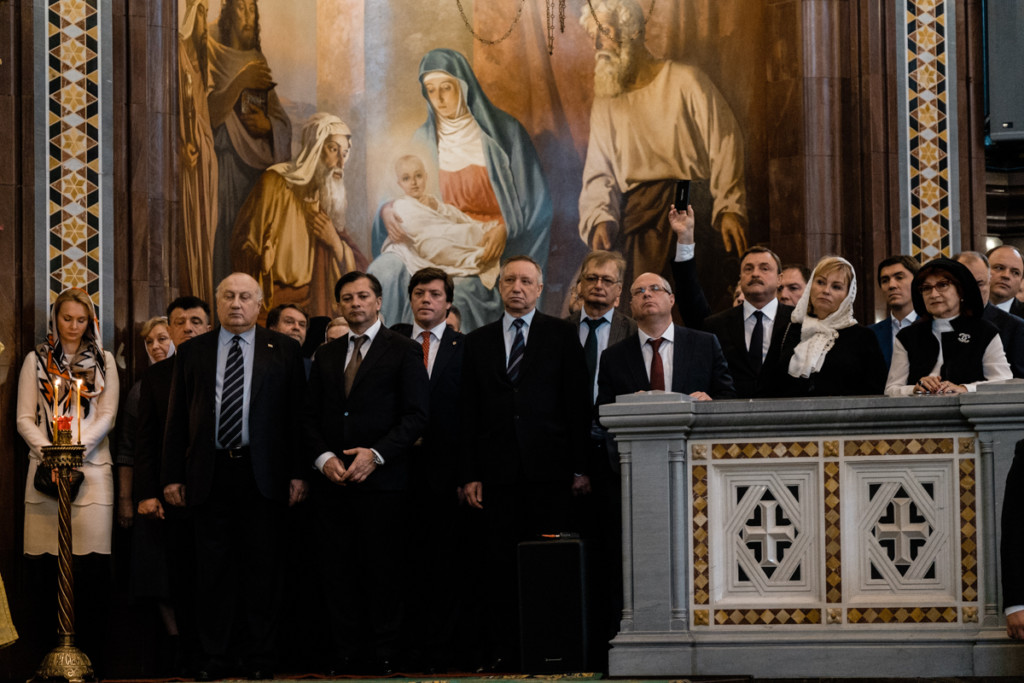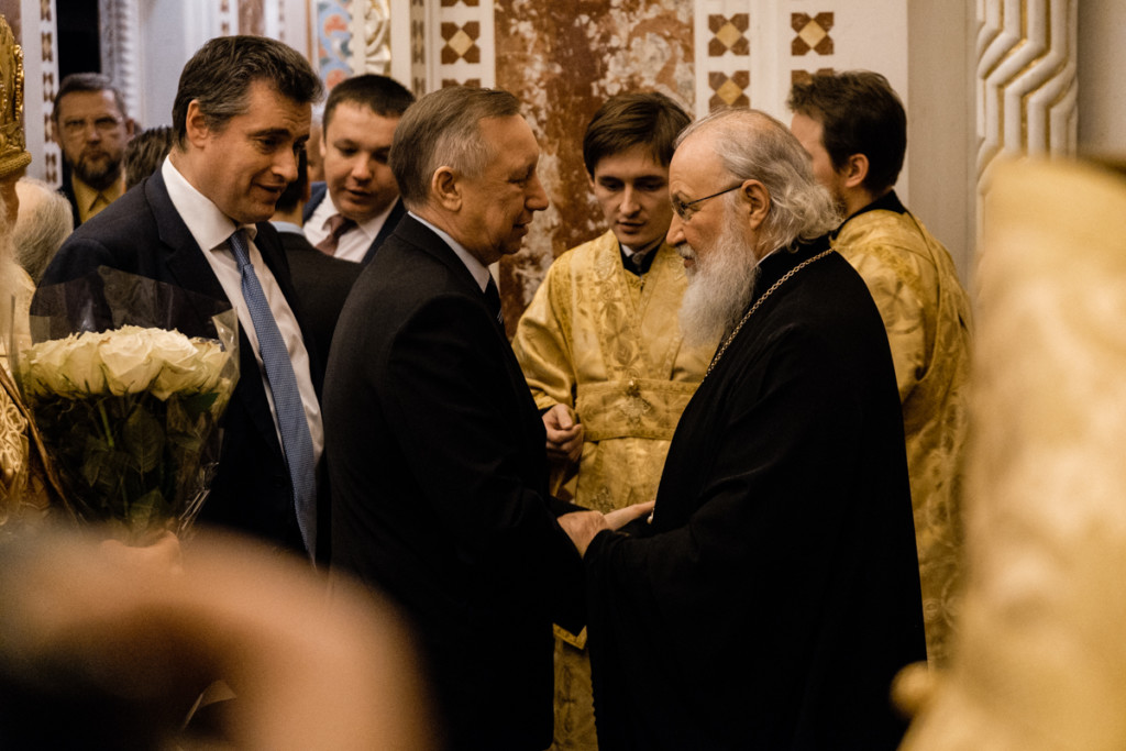 На богослужении присутствовали: полномочный представитель Президента РФ в Центральном федеральном округе А.Д. Беглов; президент Приднестровской Молдавской Республики В.Н. Красносельский; председатель Комитета Государственной Думы ФС РФ по международным делам Л.Э. Слуцкий; председатель Комитета Государственной Думы ФС РФ по делам общественных объединений и религиозных организаций С.А. Гаврилов; вице-президент Республики Абхазия В.В. Габния; депутат Государственной Думы ФС РФ, советник мэра Москвы и советник Патриарха Московского и всея Руси по вопросам строительства В.И. Ресин; Чрезвычайный и Полномочный посол Республики Абхазия в Российской Федерации И.М. Ахба; Чрезвычайны и Полномочный посол Латвийской Республики в Российской Федерации Марис Риекстиньш; председатель Государственного совета Чувашской Республики В.Н. Филимонов; руководитель Департамента национальной политики межрегиональных связей и туризма г. Москвы В.И. Сучков; заместитель председателя совета директоров ПАО «ФосАгро» А.Н. Гурьев; председатель правления, генеральный директор ПАО «ФосАгро» А.А. Гурьев.
