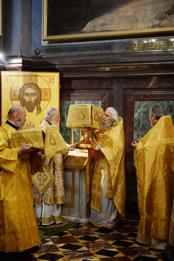 В сугубую ектению были включены особые прошения о здравии Святейшего Патриарха КИРИЛЛА. После сугубой ектении митрополит Крутицкий и Коломенский Ювеналий прочитал молитву о Предстоятеле Русской Православной Церкви.