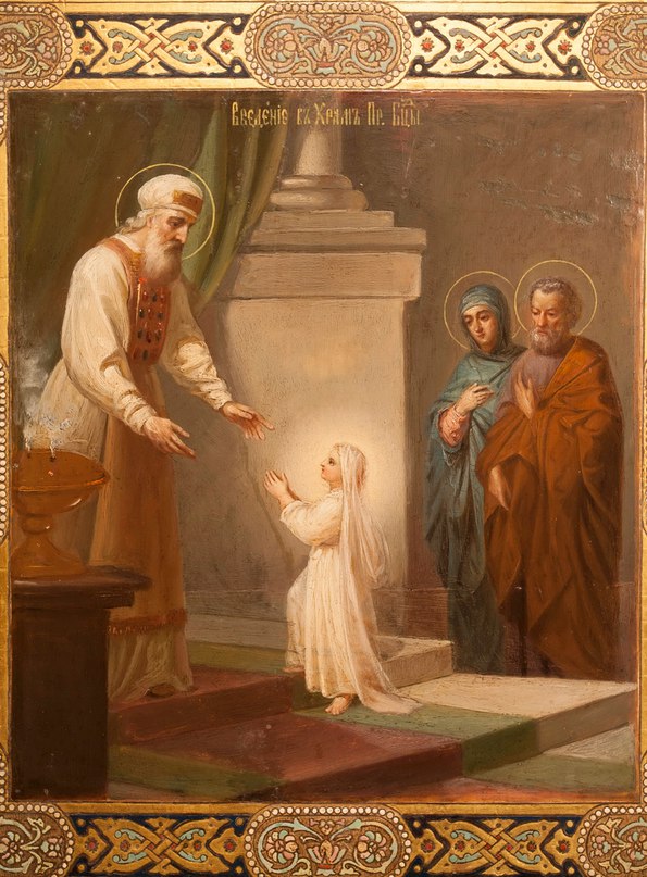 А нам что должно делать, воспоминая вхождение Пречистой? Дивиться вместе с Ангелами? Мало. Пресвятая Дева избрана из среды нас и принадлежит более нам, нежели Ангелам, а потому нам должно не удивляться только Ей, но и подражать, – не вхождением во храм Иерусалимский, который не существует более, и если бы существовал, то, принадлежа Ветхому Завету, был бы нужен для иудеев, а не для нас, – а частым и благоговейным посещением храмов христианских, из коих самый последний вмещает в себе более храма Иерусалимского. В самом деле, братие, если для Той, Которая из детства была Сама храмом Духа Святаго, и за чистоту души и тела удостоилась быть избранною в селение Бога Слова, если для Нее, для Ее усовершенствования нужно было долговременное пребывание в храме, то для нас, коим из детства «прилежит помышление... на злая» (Быт. 8:21), кои окружены толикими опасностями, подлежим таким слабостям, для нас посещение храмов Божиих должно быть одним из главных средств к нашему освящению.
