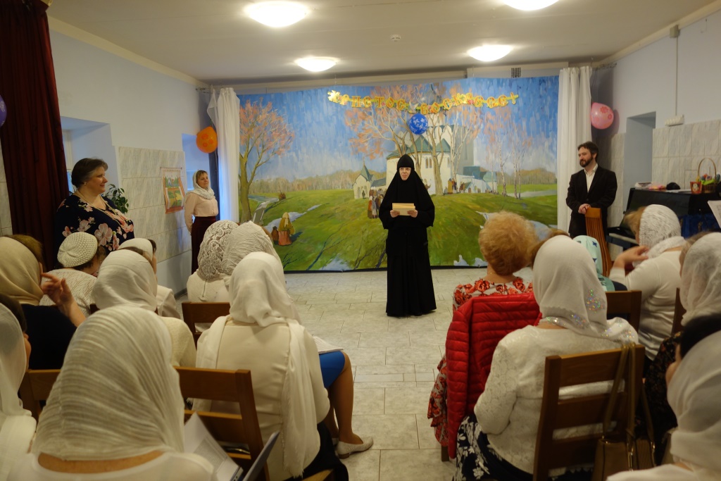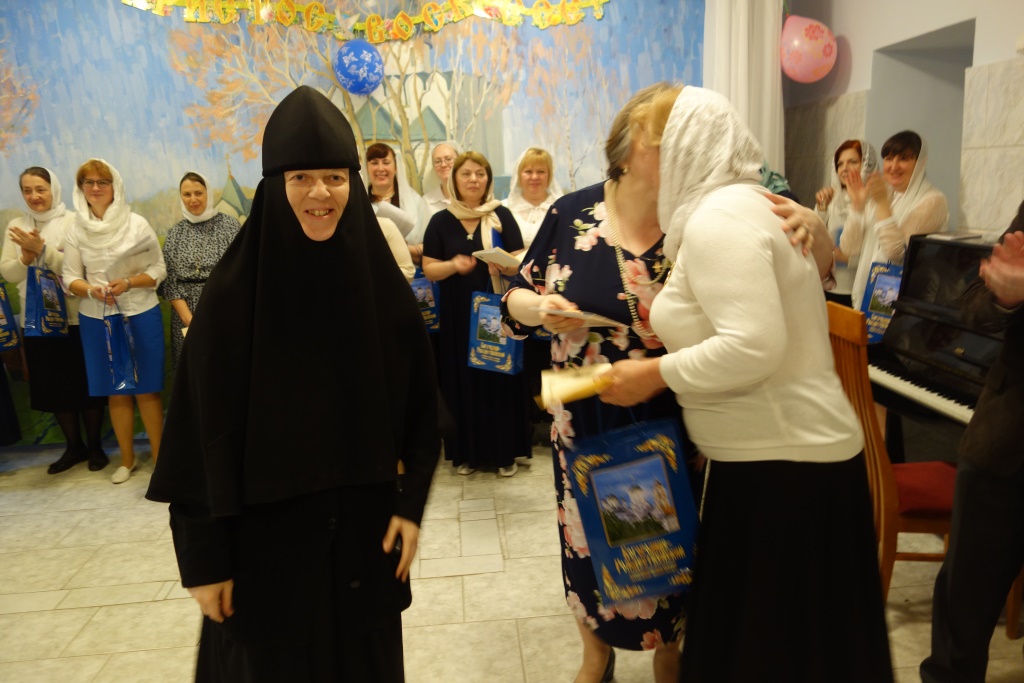 По благословению настоятельницы монастыря игумении Викторины, благочинная монахиня Сергия поздравила выпускников с окончанием школы и вручила им свидетельства и подарки от обители.