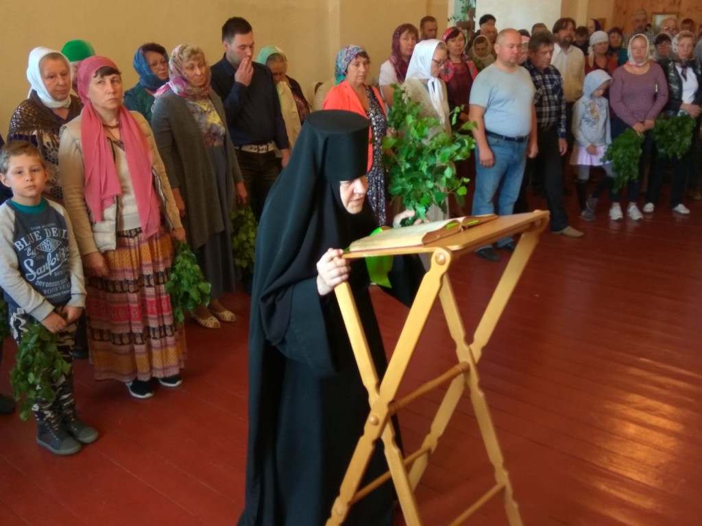 27 мая 2018 года, в День Святой Троицы, на подворье нашей обители состоялось праздничное богослужение. Божественную Литургию и вечерню Дня Святого Духа с коленопреклоненными молитвами совершил священнослужитель монастыря протоиерей Серафим Хайруллин. В храме молились трудящиеся на подворье сестры и наши прихожане.