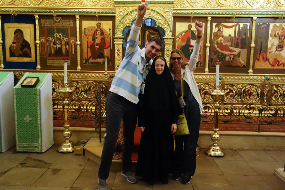 3 июля 2018 года нашу обитель посетили футбольные болельщики из Аргентины и Перу. Марина и Филипп из Аргентины поддерживают не только команду своей страны, но болеют и за российскую сборную. Они пришли в обитель, чтобы помолиться и попросить молитв за близких. Посещение монастыря произвело на них самое благоприятное впечатление. Они выразили радость, что посетили столь древнюю, действующую московскую обитель, в которой их с любовью приняли. Приходящие в обитель глубоко тронуты тем, что обитель – это не только памятник, но в ней есть внутренняя монашеская жизнь и теплится молитва.