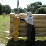 - Обработка бревен для сруба.