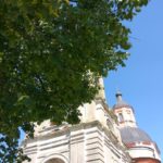- Вид храма из сада на подворье монастыря