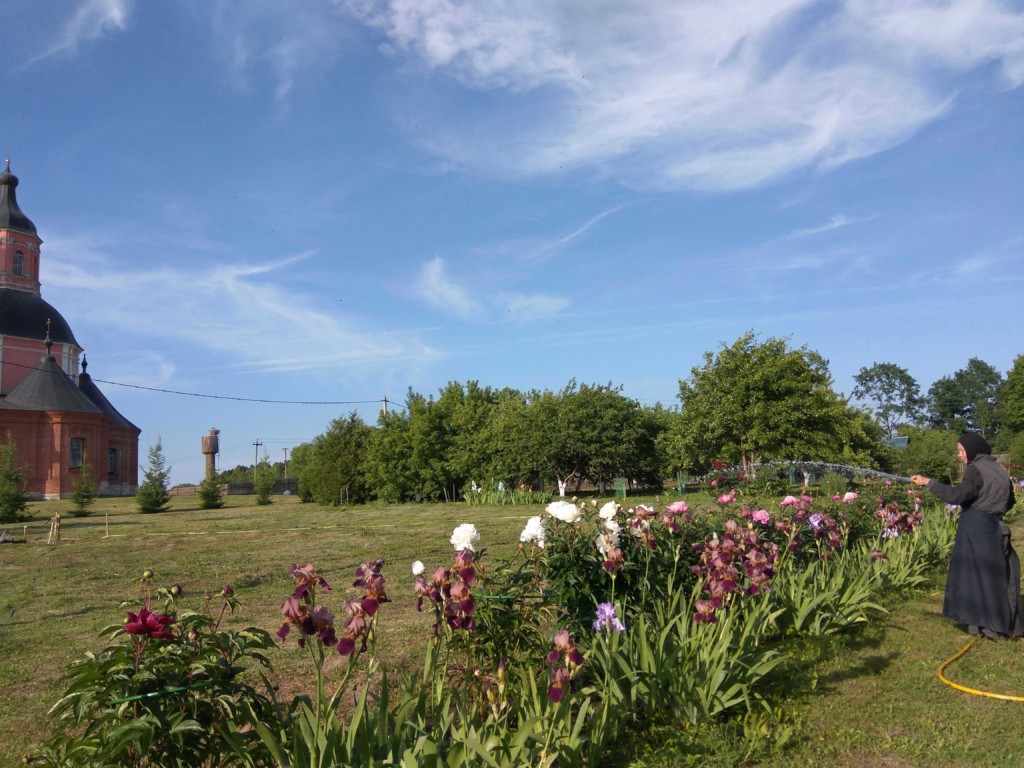 На нашем подворье в селе Федоровское Волоколамского района продолжаются богослужебная жизнь и сельскохозяйственные работы сестер в полях, на огородах, в теплицах и на пасеке. Сезон в самом разгаре: в работах поочередно принимают участие все сестры обители. Они продолжают делать посадки, занимаются прополкой и поливом, ухаживают за тепличными культурами и пчелами.