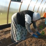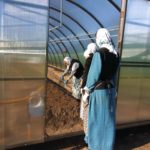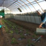 - Сестры делают посадки в теплице.