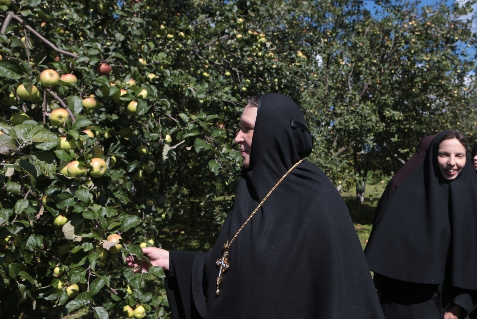 - Сбор яблок в саду на подворье монастыря
