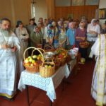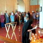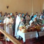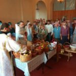 В храме молились трудящиеся на подворье сестры и наши прихожане. После заамвонной молитвы совершено освящение плодов нового урожая.