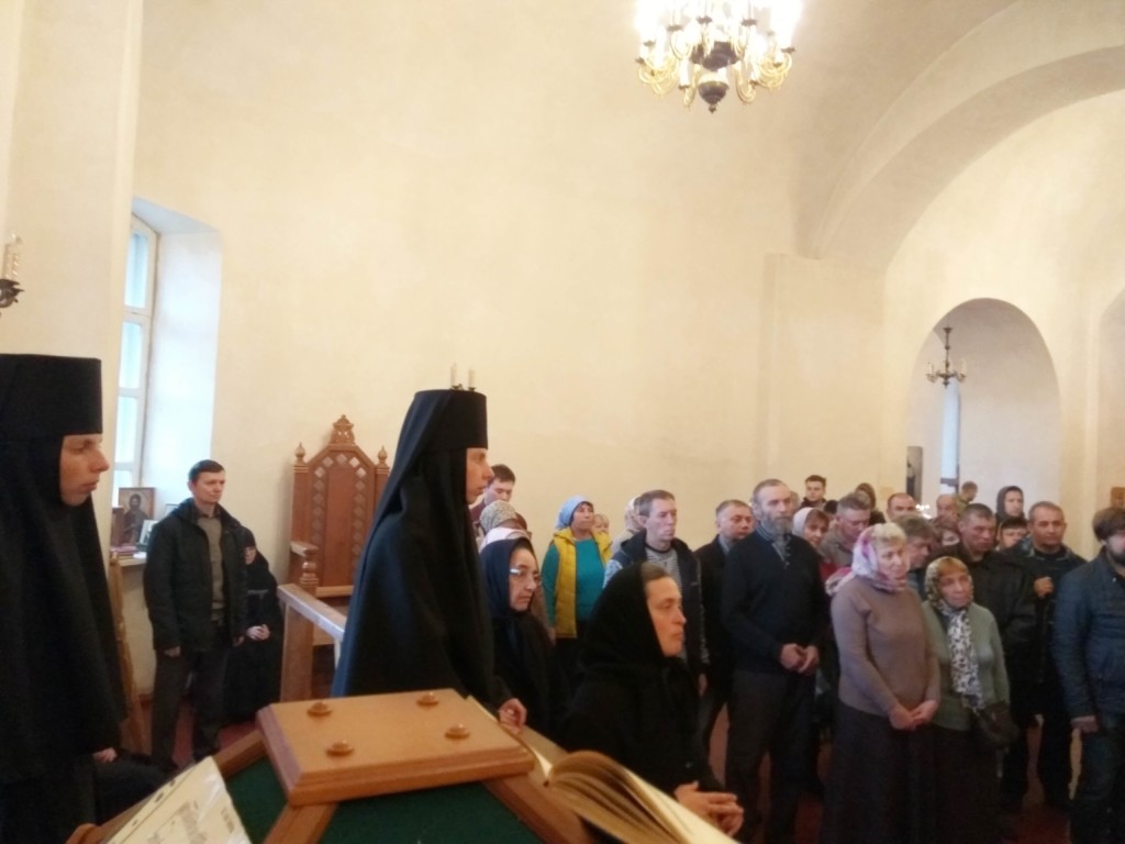 По завершении богослужения протоиерей Серафим поздравил всех с днем памяти святых Отцов VII Вселенского собора и чтимых в монастыре новомучеников и пожелал, их молитвами, утверждаться в Православной вере. Отец Серафим обратился к молящимся с проповедью, в которой сказал: