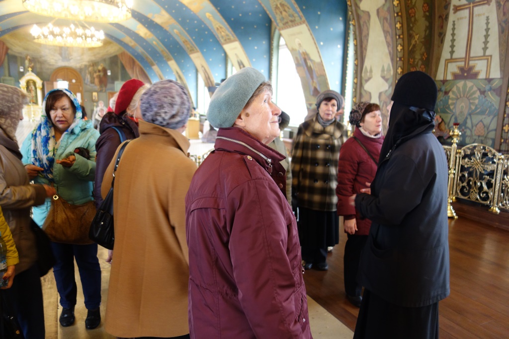 Сестры радушно встретили гостей. Благочинная обители показала нашим паломникам храмы и святыни монастыря. Паломники с благоговением поклонились святыням.