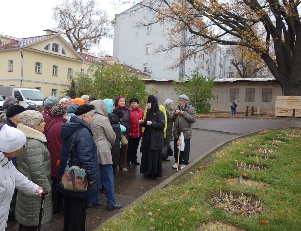 23 октября 2018 г., в день памяти чтимого в нашей обители преподобного Амвросия Оптинского, нас посетили паломники из Измайлово. Этот район Москвы известен прекрасным храмом Покрова Пресвятой Богородицы, построенным для царской усадьбы Измайлово при царях Алексее Михайловиче и Феодоре Алексеевиче, храмом Рождества Христова, не закрывавшимся в советское время, где находится почитаемая Иерусалимская икона Божией Матери и некоторое время служил приснопамятный архимандрит Иоанн (Крестьянкин), и другими церквями. Из Измайлово к нам приехали в гости верующие из общества людей с ограниченными возможностями. Для них посещение монастыря стало настоящим паломничеством.