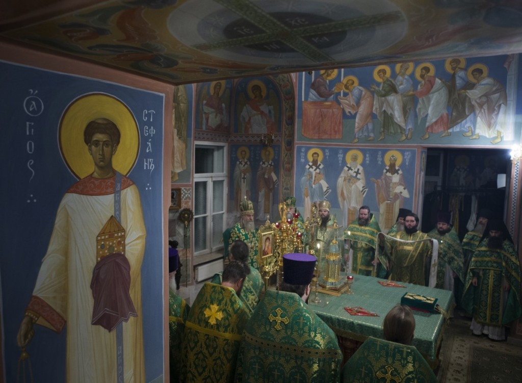 По окончании Литургии было совершено славление и исполнен тропарь празднуемым святым и архиепископ Феогност прочитал молитву перед ракой с их честными мощами.