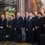 Богослужебные песнопения исполнили Патриарший хор Храма Христа Спасителя (регент И.Б. Толкачев) и братский хор Свято-Троицкой Сергиевой лавры (регент архимандрит Глеб (Кожевников)).