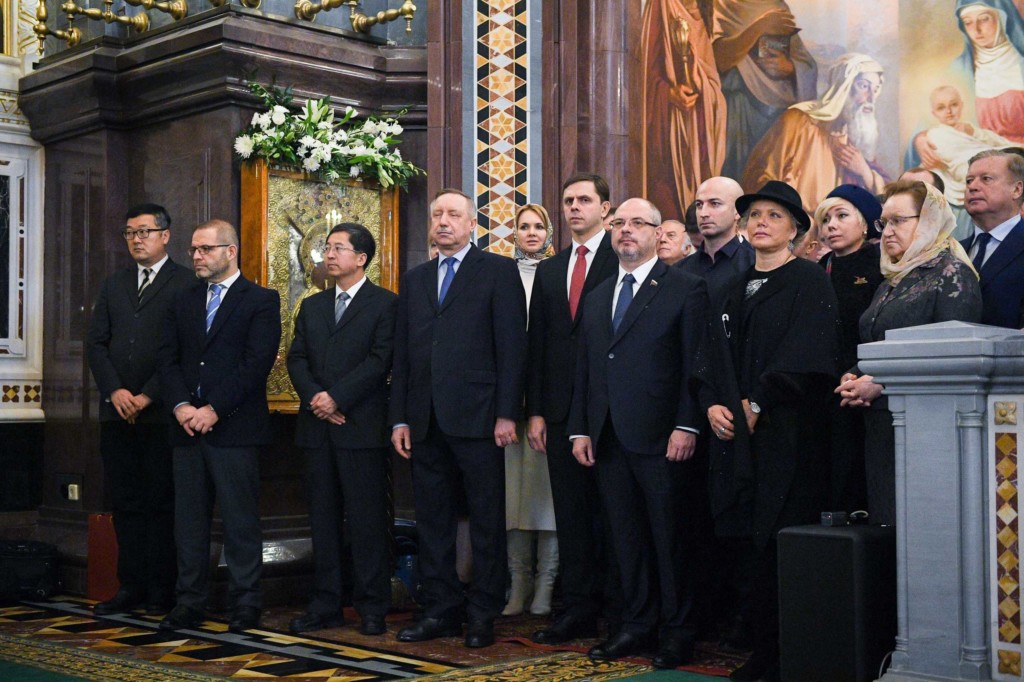 Также среди присутствующих были: и.о. губернатора Санкт-Петербурга А.Д. Беглов, председатель Комитета Государственной Думы ФС РФ по международным делам Л.Э. Слуцкий, председатель Комитета Государственной Думы ФС РФ по развитию гражданского общества, вопросам общественных и религиозных объединений С.А. Гаврилов, депутат Государственной Думы ФС РФ, советник мэра г. Москвы, советник Патриарха Московского и всея Руси по вопросам строительства В.И. Ресин, представители государственных и общественных организаций России.