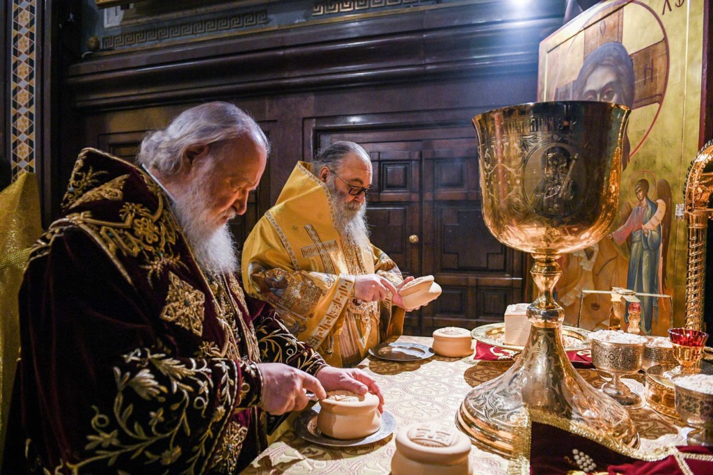В сугубую ектению были включены также особые прошения о ныне чествуемом Святейшем Патриархе Московском и всея Руси Кирилле.