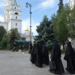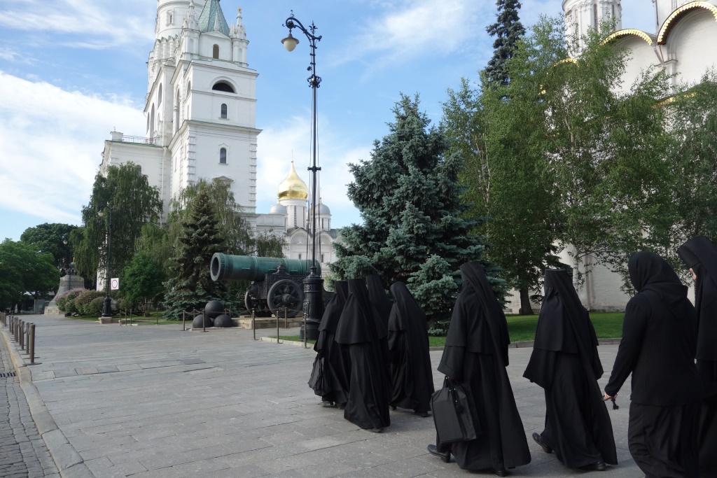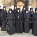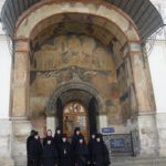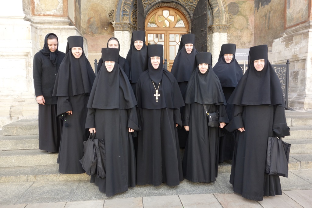 - Игумения Викторина с сестрами у входа в Архангельский собор.