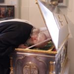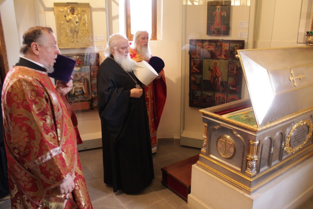 В завершении торжеств Высокопреосвященнейший Владыка прочитал молитву святым покровителям Первопрестольного града и совершил поклонение честным мощам преподобной Евфросинии Московской.