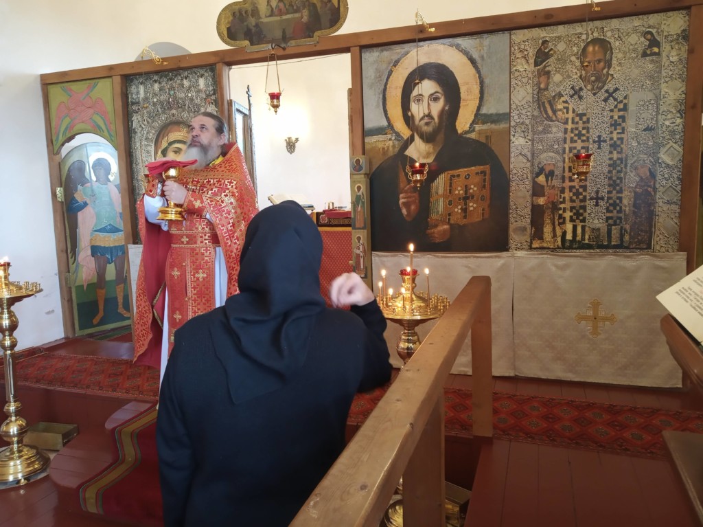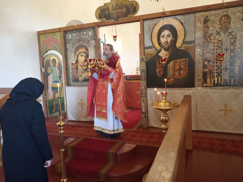 2 июня 2019 г., в Неделю 6-ю по Пасхе, о слепом, и в празднование обретения честных мощей святителя Алексия, Митрополита Киевского и Московского, на подворье нашей обители состоялось воскресное богослужение, которое совершил протоиерей Серафим Хайруллин. В храме молились трудящиеся на подворье сестры и наши прихожане. После традиционного пасхального крестного хода протоиерей Серафим поздравил молящихся с воскресным днем и праздником и обратился к ним с проповедью: