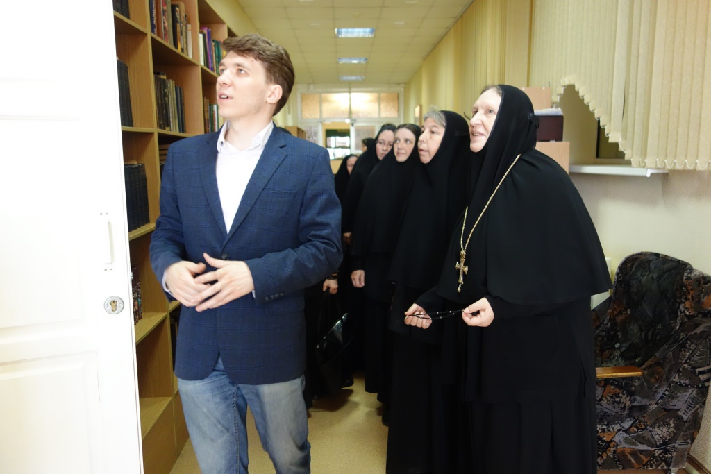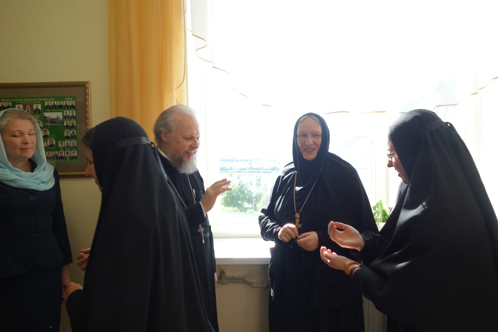Матушка Игумения и сестры посетили также и Нижегородскую духовную семинарию, ее аудитории, музей, библиотеку. Для них была проведена большая экскурсия по семинарии. В семинарии Матушку и сестер радушно встретил проректор протоиерей Александр Мякинин.