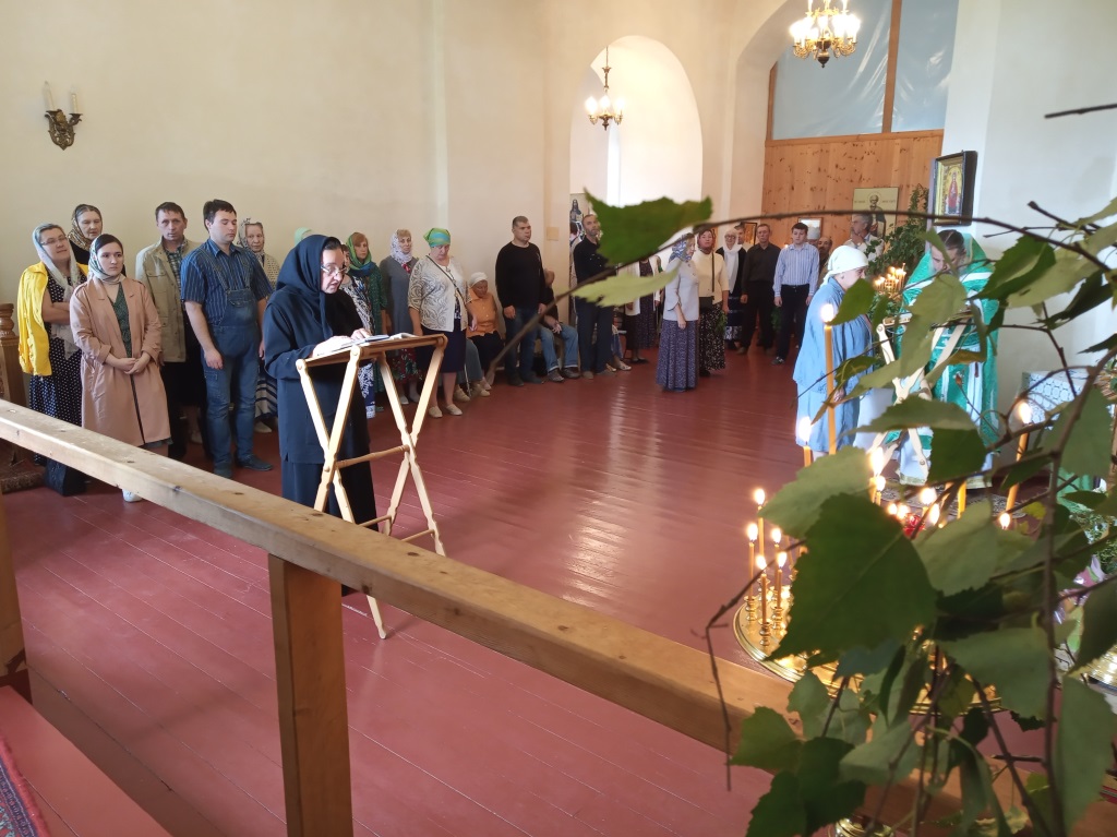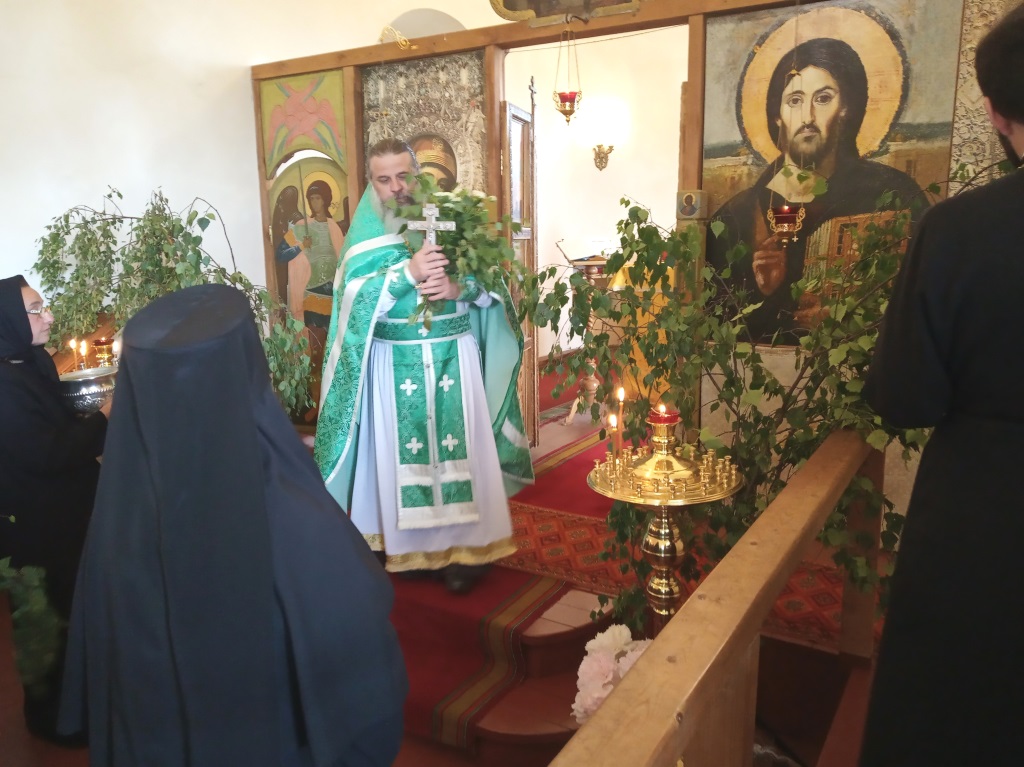 16 июня 2019 г., в день Святой Троицы, на подворье нашей обители состоялось праздничное богослужение, которое совершили священнослужители монастыря протоиерей Серафим Хайруллин и иерей Роман Чистяков. За Божественной Литургией и вечерней молились трудящиеся на подворье сестры и наши прихожане.