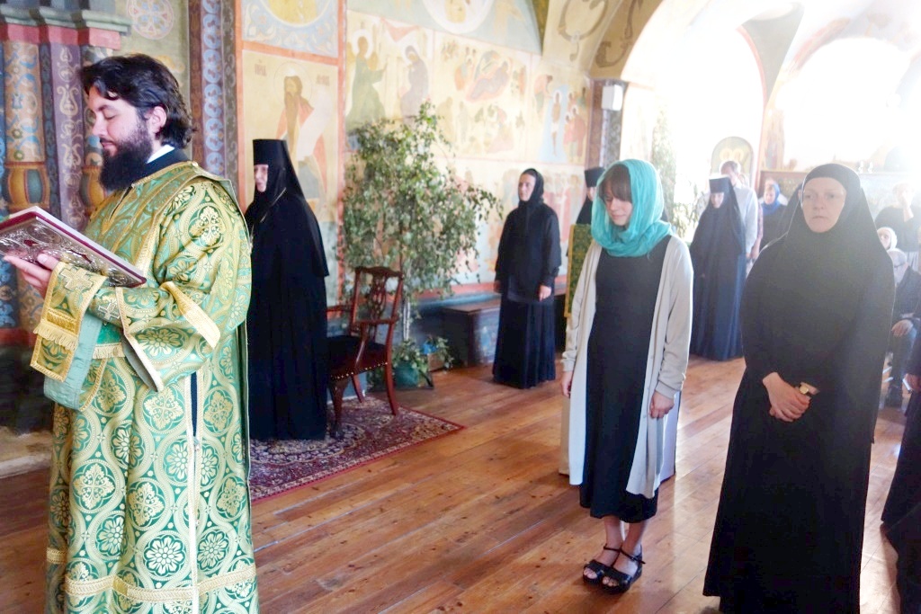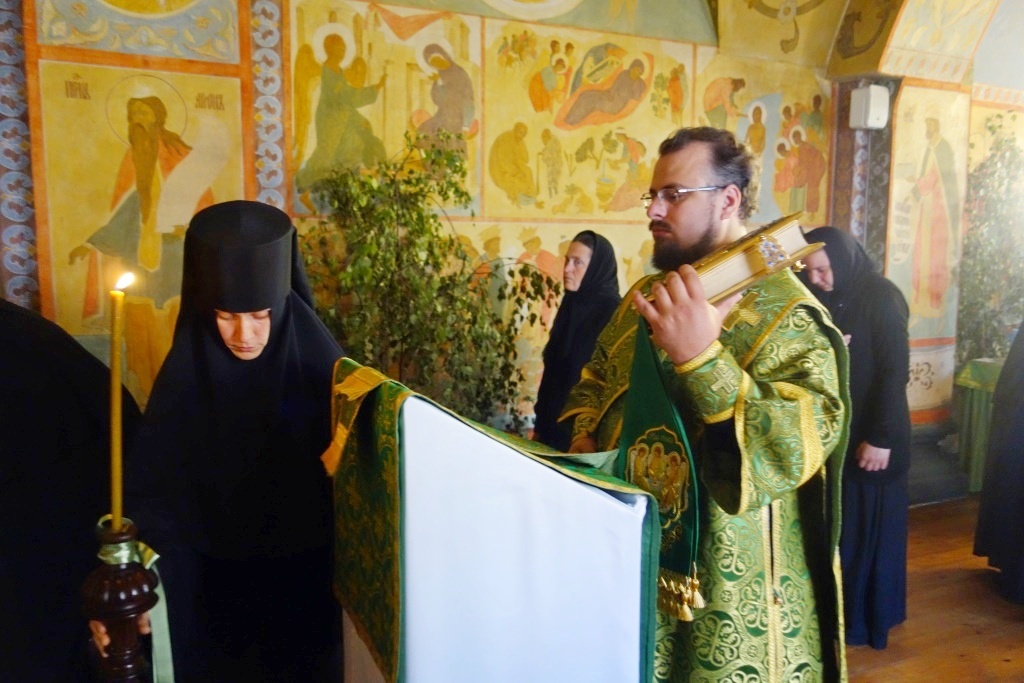 В приделе Сошествия Святого Духа на апостолов молились настоятельница монастыря игумения Викторина (Перминова) с сестрами и прихожане обители.