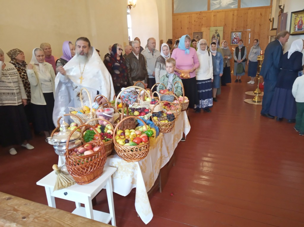 а на следующий день совершены Божественная Литургия и освящение плодов нового урожая. Богослужения совершил священнослужитель монастыря протоиерей Серафим Хайруллин.