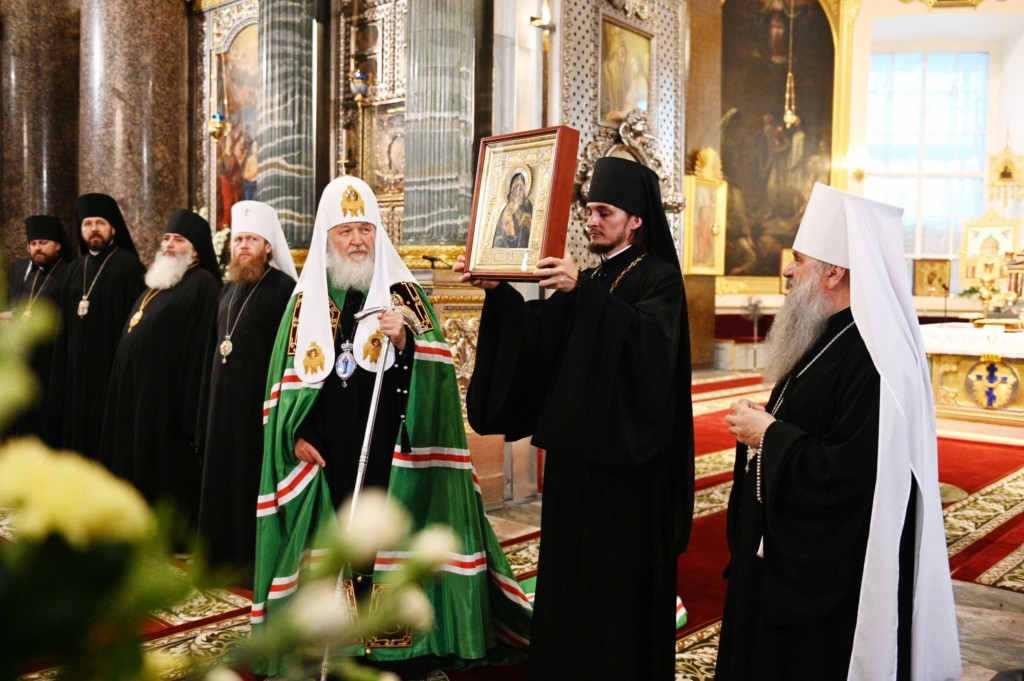 В дар Казанскому собору Святейший Владыка передал старинный список Владимирской иконы Божией Матери.