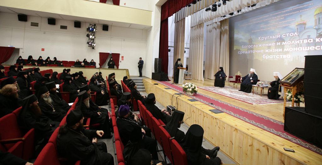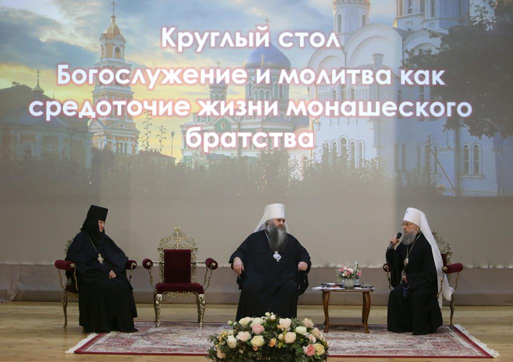 Накануне, как сообщал портал «Монастырский вестник», состоялся круглый стол, в рамках которого участники встречи обсудили практические аспекты и особенности монастырского богослужения. Во второй части заседания в формате дискуссии с сообщениями на заявленные темы выступили игумен Нижегородского Благовещенского монастыря, ответственный по мужским монастырям Нижегородской епархии архимандрит Александр (Лукин) («Современные практики совершения суточного богослужебного круга и Литургии») и насельник Нижегородского Вознесенского Печерского монастыря игумен Вассиан (Бирагов) («Значение келейного правила для духовного делания, подготавливающего к участию в богослужении, и как части богослужебного круга»). Во время обсуждения этих выступлений были высказаны, в частности, мысли о богослужении в монастыре как главном объединяющем начале и фундаменте, на котором строится монашеское общежитие, о молитве как источнике жизни и здоровья души (именно поэтому в уставе монастыря должно быть предусмотрено время для келейной молитвы), о высоте монашеского целеполагания – святости, а также о том, что глубинная суть келейной и церковной молитвы не меняется от места ее совершения и в келии подвижник приносит на алтарь свое сердце.