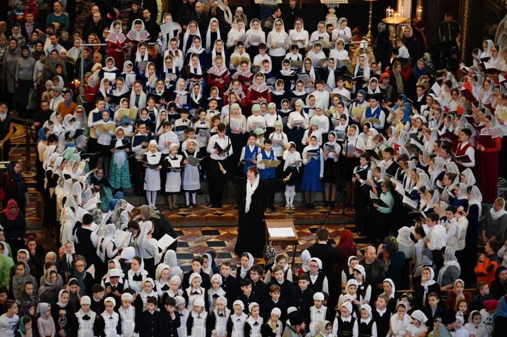 Я хотел бы всех вас сердечно поблагодарить — наших детей, которые учатся в воскресных школах, и тех, которые в воскресных школах не учатся, но сегодня собрались в Храме Христа Спасителя. Для меня очень радостно видеть ваши лица, видеть вас молящимися в этом всероссийском кафедральном соборе.