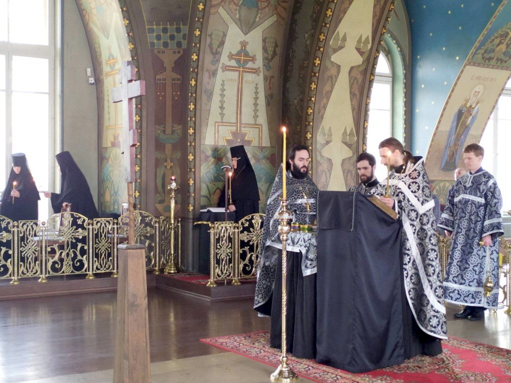Вечером 29 апреля 2021 года в нашей обители были совершены малое повечерие с чтением трипеснца и утреня Великого Пятка с чтением 12-и Евангелий Святых Страстей Господа нашего Иисуса Христа. Богослужения совершило монастырское духовенство. В храме молились настоятельница нашего монастыря игумения Викторина (Перминова) с сестрами и прихожане обители.