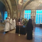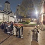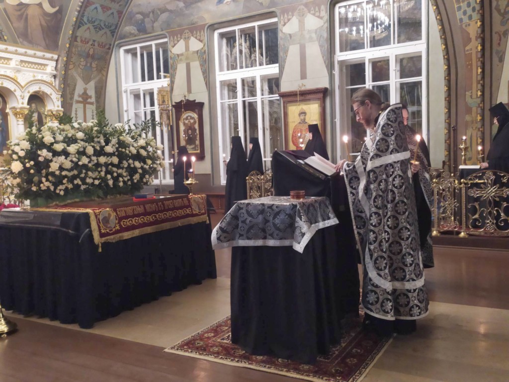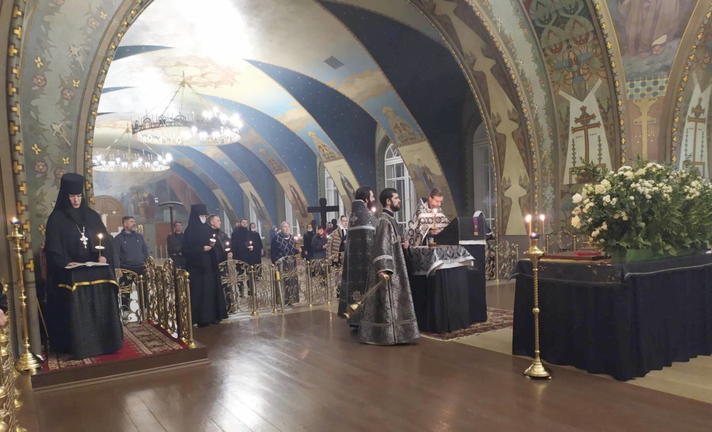 Далее был прочтен канон, в котором автор, преподобный Косма Маиумский, раскрывает глубинный смысл и вечное значение происходящего события. Мы слышим о неизреченном таинстве - Крестной смерти, Погребении Пречистого Тела и Сошествии Душою во ад Господа Иисуса Христа, сокрушившего силу ада и изведшего оттуда души праведных: "Царствует ад, но не вечнует над родом человеческим, / Ты бо положся во гробе Державне, живоначальною дланию, / смерти ключи развергл еси, / и проповедал еси от века тамо спящим, избавление неложное / быв, Спасе, мертвым первенец".