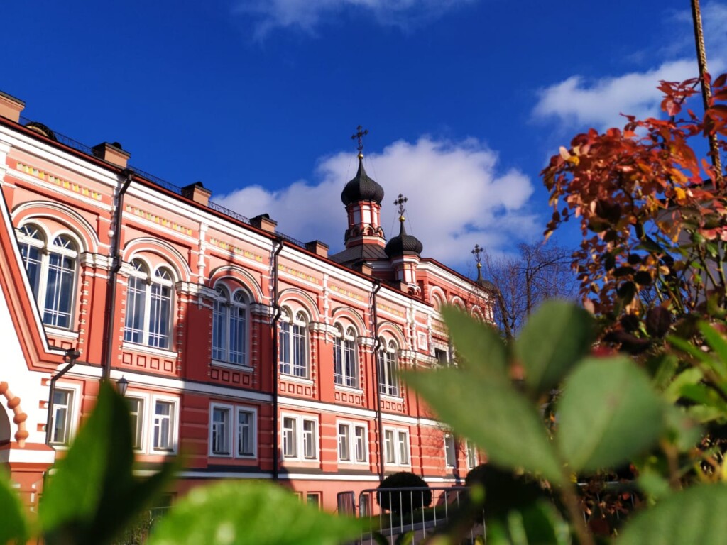 Обитель готовится к встрече одного из своих престольных праздников - празднования Казанской иконе Пресвятой Богородицы. Первые дни ноября выдались теплыми, солнечными, непохожими на позднюю осень. Даже розы на некоторых цветниках еще не отцвели и продолжают нас радовать! Тем не менее, осеннее время дает о себе знать: опадает последняя листва с деревьев, осенние краски присутствуют в видах обители. Но от этого они не менее прекрасны!
