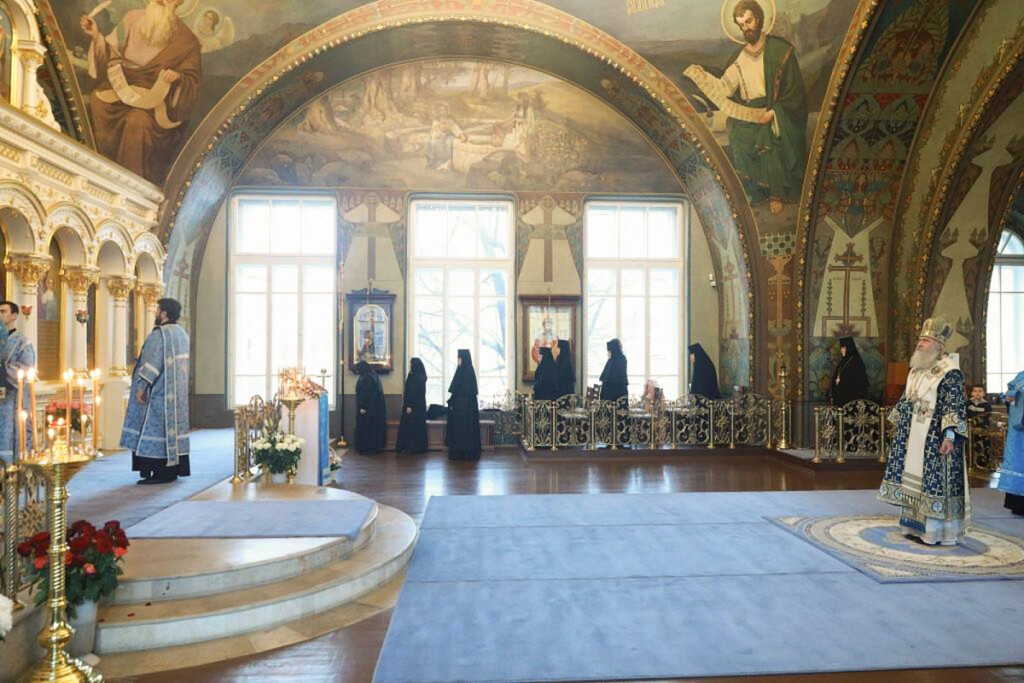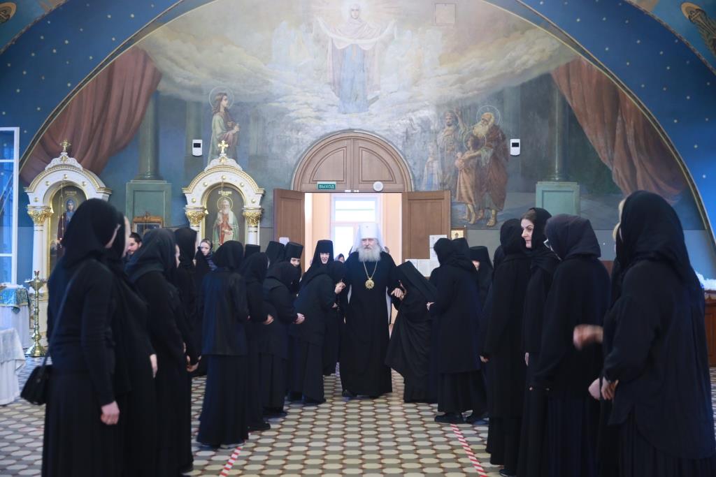 Его Высокопреосвященству сослужили настоятель храма Рождества Пресвятой Богородицы в Олбани (штат Нью-Йорк, США) протоиерей Алексий Дункан и монастырское духовенство. За богослужением молились настоятельница монастыря игумения Викторина (Перминова); зав. Канцелярией Синодального отдела по монастырям и монашеству Г.В. Филиппова; сестры и прихожане обители.