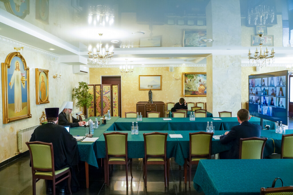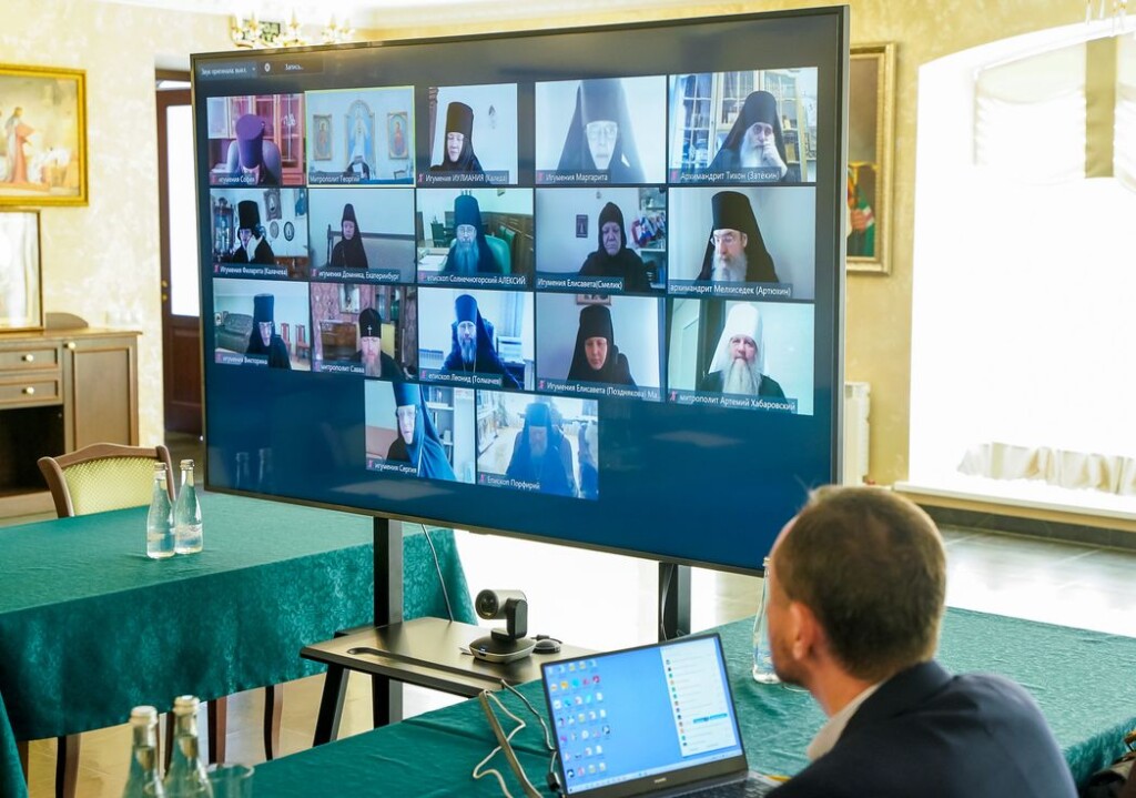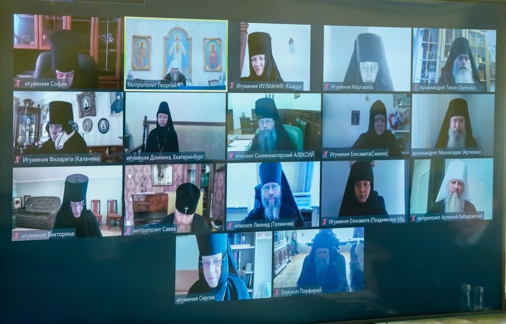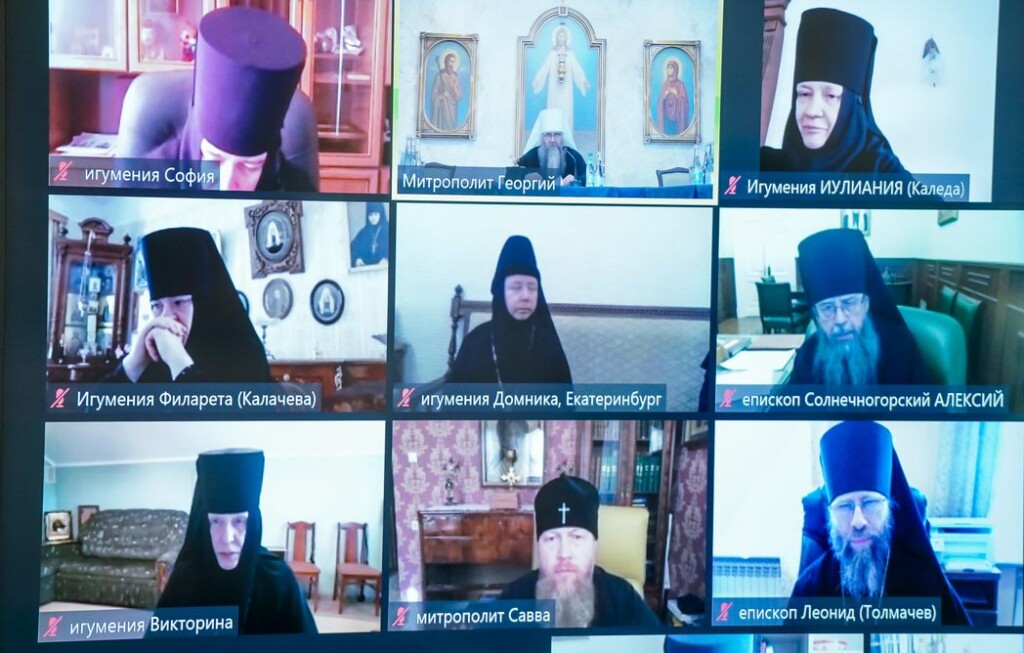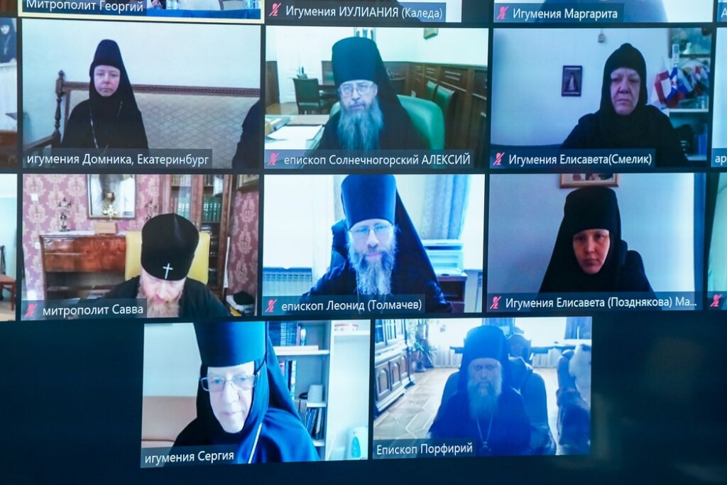 30 марта состоялось очередное заседание комиссии Межсоборного присутствия Русской Православной Церкви по вопросам организации жизни монастырей и монашества. В связи с пандемией коронавируса общение проходило в формате видеоконференции. Из архиерейской резиденции при Александро-Невском кафедральном соборе Нижнего Новгорода заседание провел председатель комиссии митрополит Нижегородский и Арзамасский Георгий.