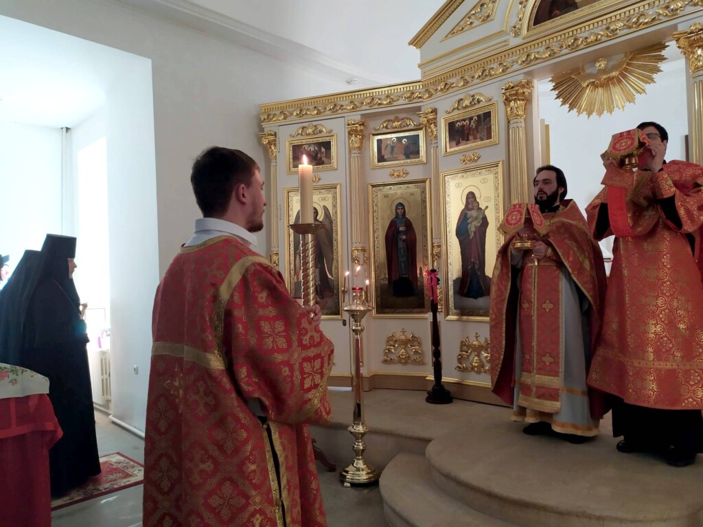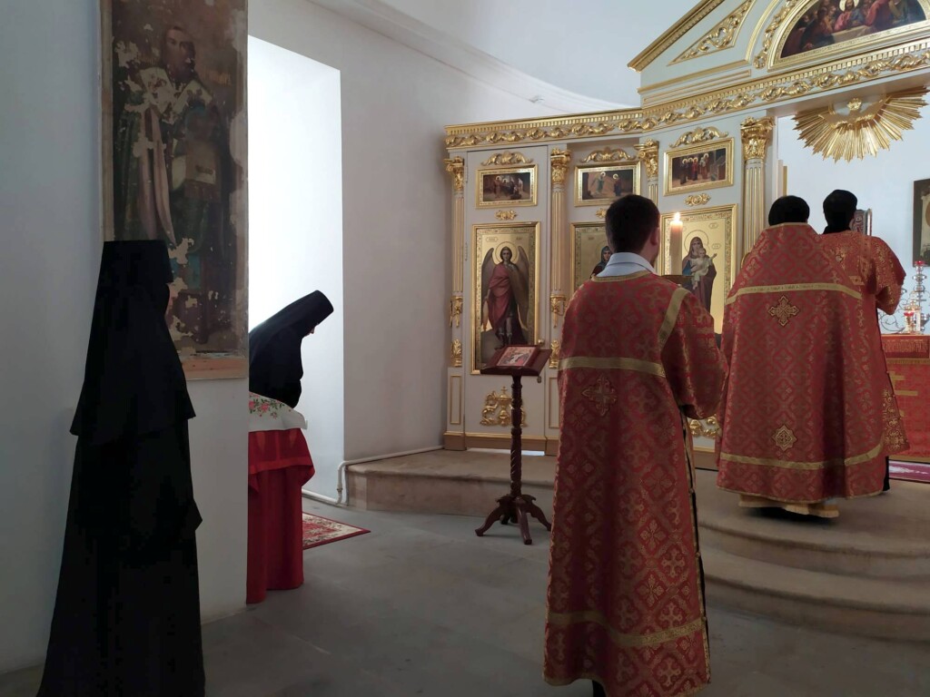 15 мая 2022 года, в Неделю 4-ю по Пасхе, о расслабленном, и празднование перенесения мощей свв. страстотерпцев благоверных князей Российских Бориса и Глеба, во Святом Крещении Романа и Давида, в нашей обители состоялись воскресные богослужения. За ранней Литургией, совершенной в надвратном храме в честь сщмч. Евгения Херсонесского, молились настоятельница нашего монастыря игумения Викторина (Перминова) с сестрами и прихожане обители.