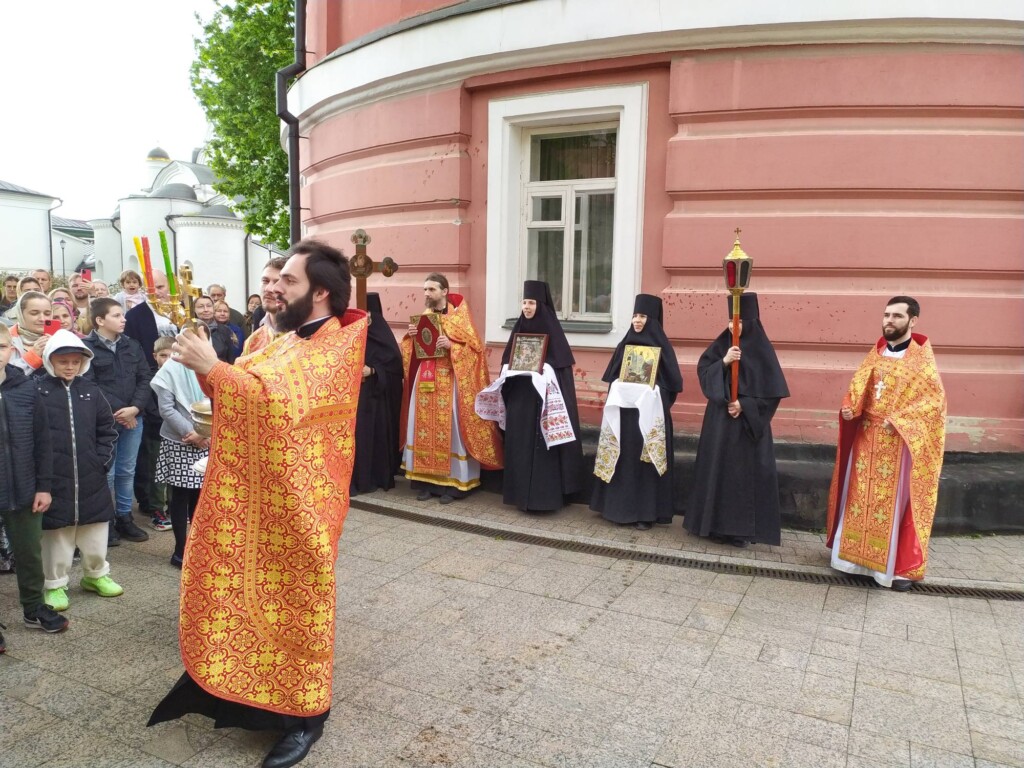 15 мая 2022 года, в Неделю 4-ю по Пасхе, о расслабленном, и празднование перенесения мощей свв. страстотерпцев благоверных князей Российских Бориса и Глеба, после поздней Литургии состоялся традиционный для воскресных дней пасхального периода крестный ход, в котором приняли участие монастырские священнослужители, сестры обители и наши прихожане.