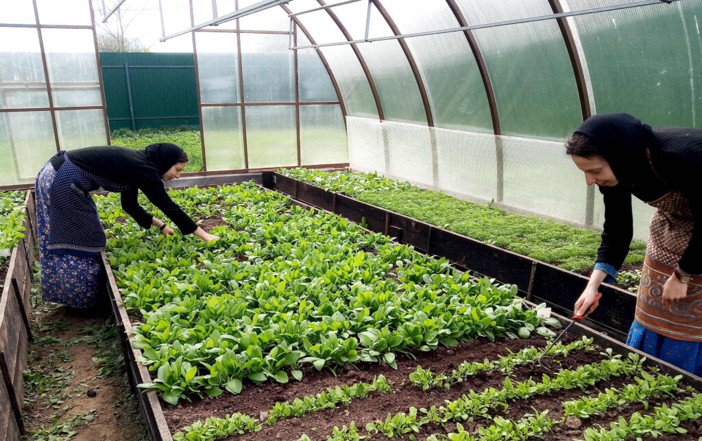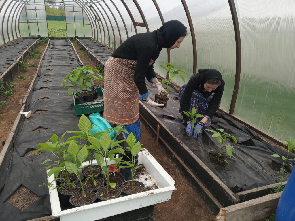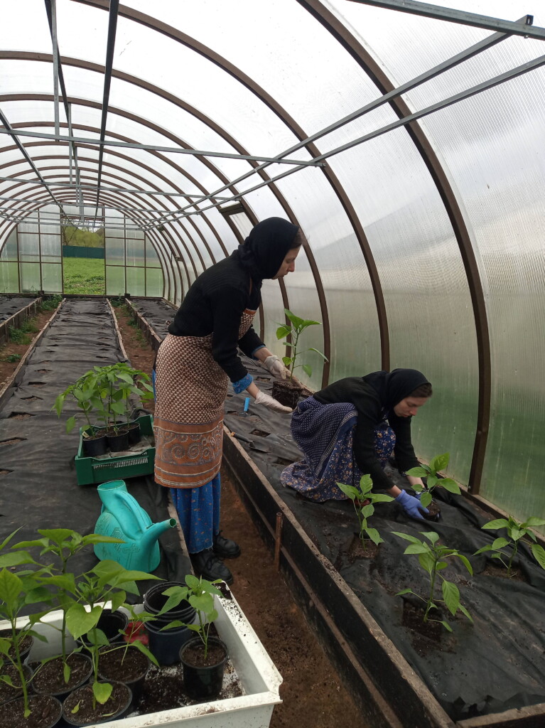 В мае на подворье монастыря начались сезонные сельскохозяйственные работы: посадка картофеля, лука, других овощных культур; в теплицах высаживаются рассада и зелень.
