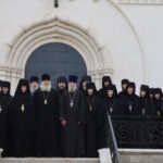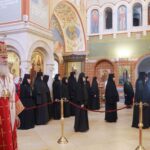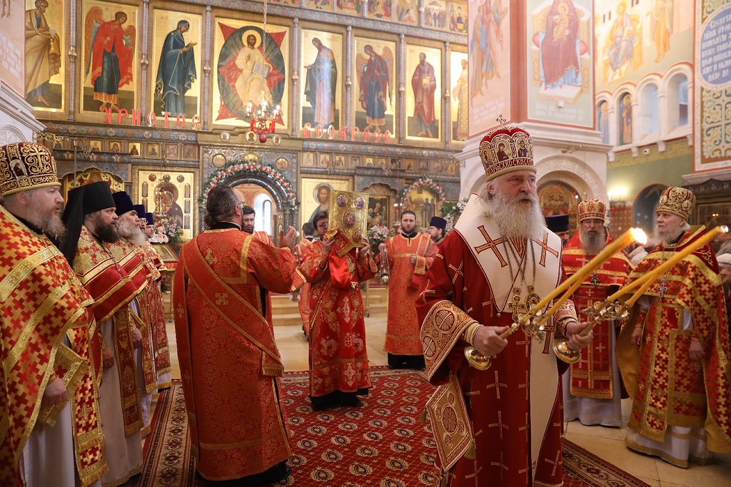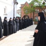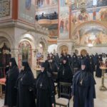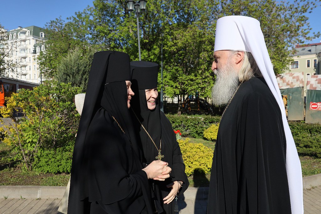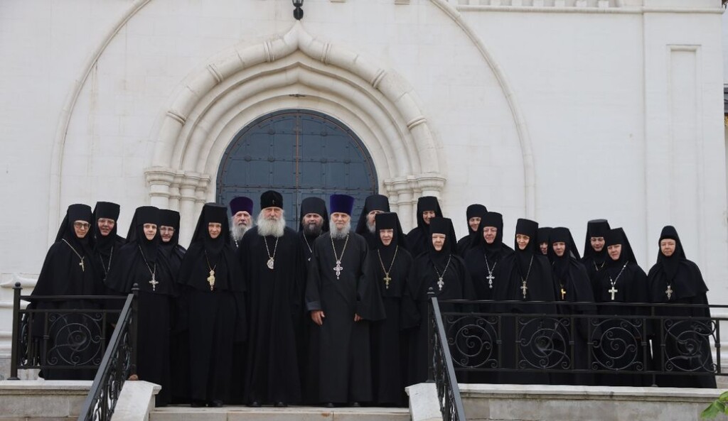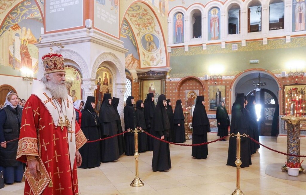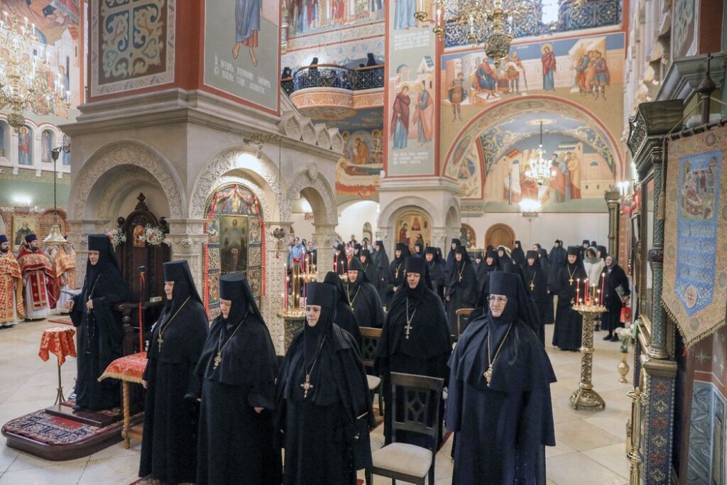 За Литургией молились заместитель председателя Синодального отдела по монастырям и монашеству, настоятельница Зачатьевского ставропигиального женского монастыря игумения Иулиания (Каледа), настоятельница нашего Богородице-Рождественского ставропигиального женского монастыря игумения Викторина (Перминова), настоятельница Марфо-Мариинской обители милосердия игумения Елисавета (Позднякова), настоятельница Иоанно-Предтеченского ставропигиального женского монастыря игумения Елисавета (Никишкина), настоятельница Покровского Хотькова ставропигиального женского монастыря игумения Олимпиада (Баранова), настоятельница Борисоглебского Аносина ставропигиального женского монастыря игумения Мария (Солодовникова), настоятельница Троице-Одигитриевского ставропигиального женского монастыря Зосимова пустынь игумения Фаина (Кулешова), настоятельница Свято-Троицкого Александро-Невского ставропигиального женского монастыря с. Акатова игумения Антония (Минина), настоятельница Никольского Шостьенского ставропигиального женского монастыря игумения Неонилла (Фролова), настоятельница Алексеево-Акатова женского монастыря г. Воронежа игумения Варвара (Сажнева), настоятельница Костомаровского Спасского женского монастыря с. Костомарово Воронежской области игумения Елена (Золотухина), настоятельница Серпуховского Введенского Владычнего женского монастыря г. Серпухова Московской области игумения Алексия (Петрова), настоятельница Никитского женского монастыря г. Каширы Московской области игумения Магдалина (Чекулаева), настоятельница Свято-Варсонофиевского женского монастыря в с. Покровские Селищи Республики Мордовия игумения Леонида (Куликова), настоятельница Петропавловского женского монастыря г. Юрьев-Польский Владимирской области игумения Серафима (Ващинская), настоятельница Александро-Невского Ново-Тихвинского женского монастыря г. Екатеринбурга игумения Домника (Коробейникова), настоятельница Свято-Екатерининского женского монастыря в Твери игумения Иулиания (Ритониеми), настоятельница Вознесенского Оршина женского монастыря п. Орша Тверской области игумения Евпраксия (Инбер), настоятельница женского монастыря во имя мученика Феодора Стратилата г. Переславля-Залесского Ярославской области игумения Даниила (Севериненко), настоятельница Свято-Никольского женского монастыря с. Венев Тульской области игумения Алексия (Бажина), настоятельница Богородицкого Житенного женского монастыря г. Осташков Тверской области игумения Елисавета (Евдокимова).