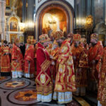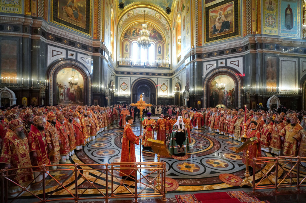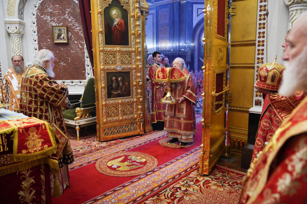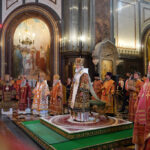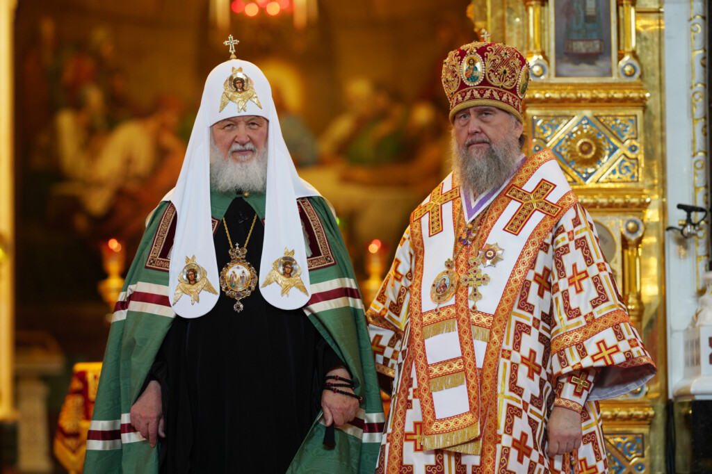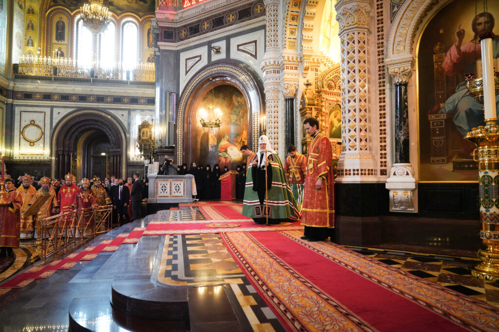 24 мая 2022 года, в день памяти равноапостольных Мефодия и Кирилла, учителей Словенских, Святейший Патриарх Московский и всея Руси Кирилл совершил Божественную литургию в кафедральном соборном Храме Христа Спасителя в Москве. В этот день также отмечаются День славянской письменности и культуры и тезоименитство Святейшего Патриарха Кирилла.Его Святейшеству сослужили: митрополит Ювеналий (Поярков); митрополит Кишиневский и всея Молдовы Владимир; митрополит Астанайский и Казахстанский Александр; митрополит Ташкентский и Узбекистанский Викентий; митрополит Санкт-Петербургский и Ладожский Варсонофий; митрополит Крутицкий и Коломенский Павел, Патриарший наместник Московской митрополии; митрополит Волоколамский Иларион, председатель Отдела внешних церковных связей Московского Патриархата; митрополит Минский и Заславский Вениамин; митрополит Воскресенский Дионисий, первый викарий Патриарха Московского и всея Руси по г. Москве, управляющий делами Московской Патриархии; митрополит Калужский и Боровский Климент, председатель Издательского Совета Русской Православной Церкви; митрополит Воронежский и Лискинский Сергий; митрополит Омский и Таврический Владимир; митрополит Тульский и Ефремовский Алексий; митрополит Липецкий и Задонский Арсений; митрополит Белгородский и Старооскольский Иоанн; митрополит Красноярский и Ачинский Пантелеимон; митрополит Йошкар-Олинский и Марийский Иоанн; митрополит Казанский и Татарстанский Кирилл; митрополит Иваново-Вознесенский и Вичугский Иосиф; митрополит Брянский и Севский Александр; митрополит Курганский и Белозерский Даниил; митрополит Каширский Феогност, председатель Синодального отдела по монастырям и монашеству; митрополит Тамбовский и Рассказовский Феодосий; митрополит Нижегородский и Арзамасский Георгий; митрополит Оренбургский и Саракташский Вениамин; митрополит Симбирский и Новоспасский Лонгин; митрополит Тверской и Кашинский Амвросий; митрополит Кемеровский и Прокопьевский Аристарх; митрополит Новосибирский и Бердский Никодим; митрополит Ставропольский и Невинномысский Кирилл, председатель Синодального комитета по взаимодействию с казачеством; митрополит Орловский и Болховский Тихон; митрополит Саранский и Мордовский Зиновий; митрополит Хабаровский и Приамурский Артемий; митрополит Ханты-Мансийский и Сургутский Павел; митрополит Вологодский и Кирилловский Савва;