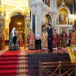 По окончании Литургии было совершено славление равноапостольным Мефодию и Кириллу. Затем было возглашено многолетие тезоименитому Святейшему Патриарху Кириллу.